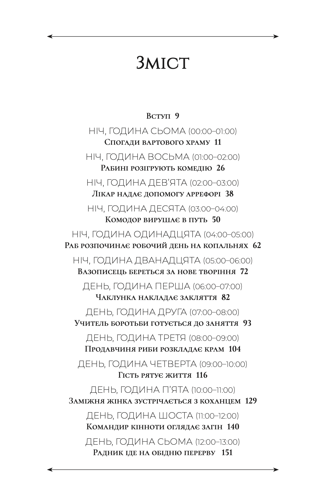 Упродовж одного звичайного дня ми познайомимося з двадцятьма чотирма типовими афінянами — від рабині до політика, від торговки рибою до вазописця, від вершника до лікаря — і дізнаємося, якими насправді були Афіни, провівши з кожним по одній годині. Ми також маємо змогу зазирнути в повсякденне життя таких видатних афінян, як Сократ, Платон, Гіппократ, Фукідід та Софокл, і побачити їх очима звичайних мешканців міста. Що можуть розповісти життя цих людей про самі Афіни?