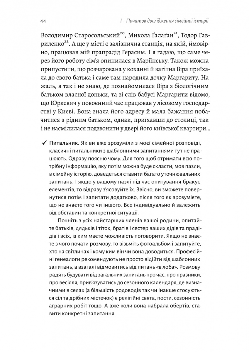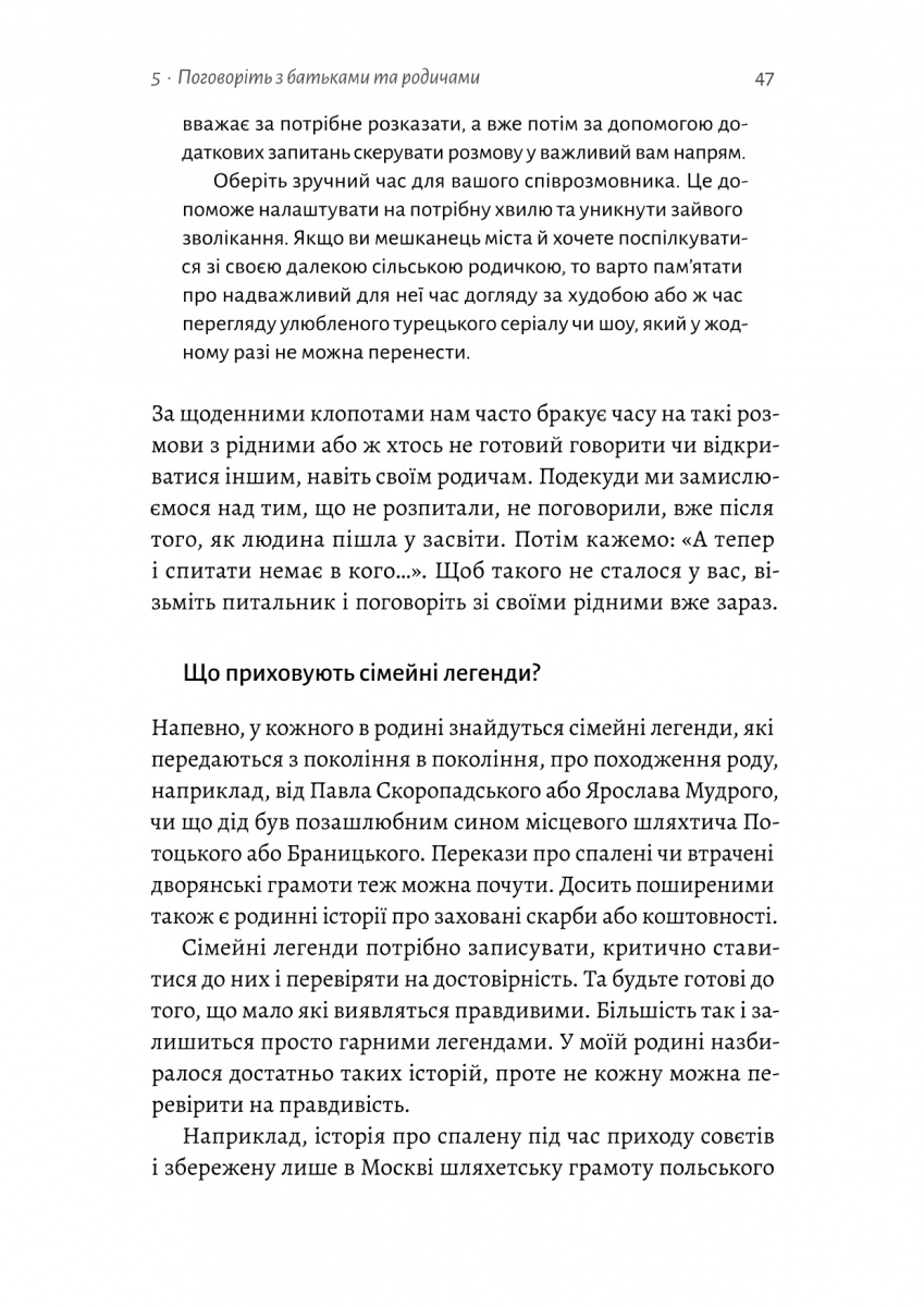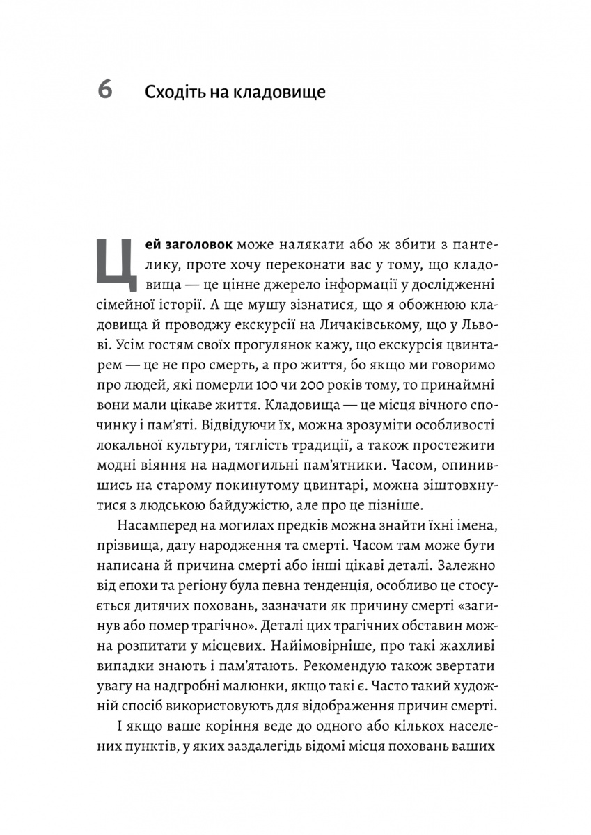 Чи замислювались ви скільки таємниць приховано серед старовинних фотографій і туманних спогадів вашої родини? І як багато історій досі залишаються нерозказаними, а зв’язки із далекими близькими — втраченими? Книжка «А тепер і спитати немає в кого» — це практичний путівник у світ генеалогії, що допоможе крок за кроком зібрати і зберегти навіть найменші уламки родинної пам’яті.