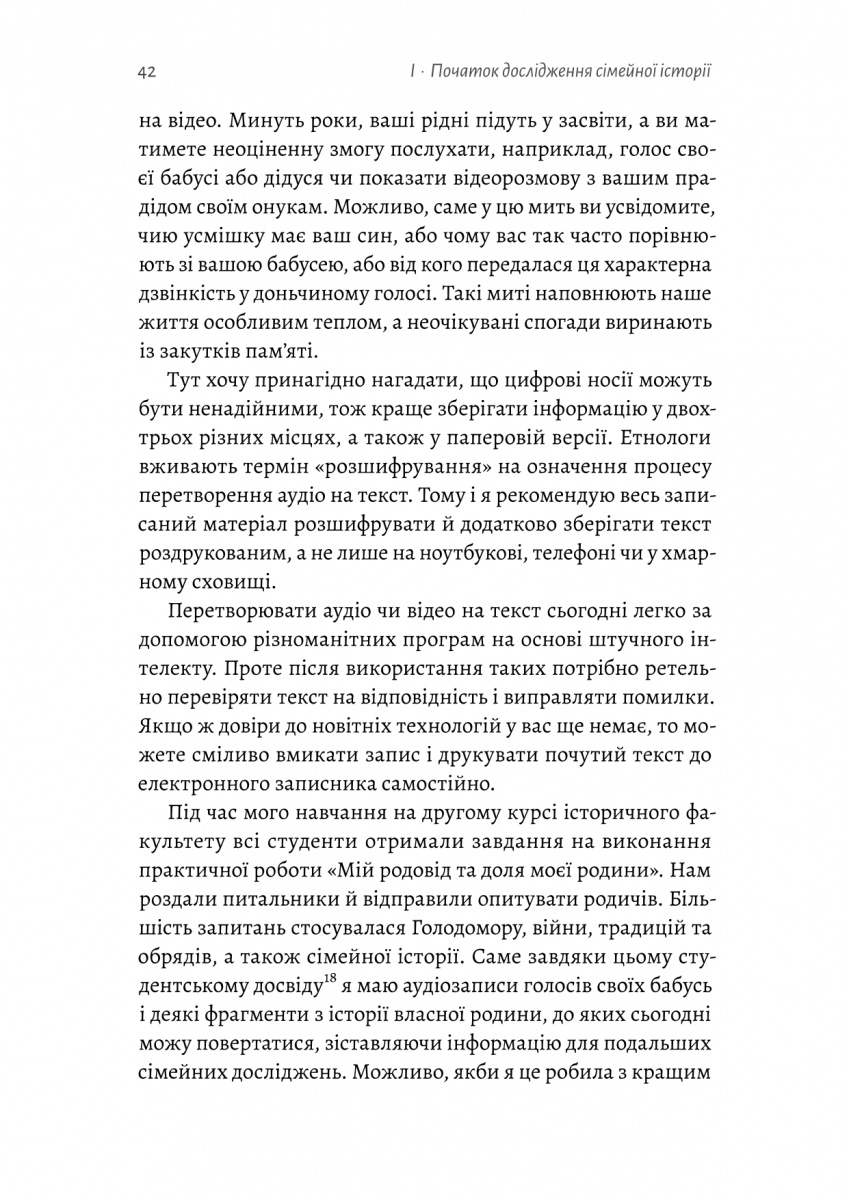З чого розпочати дослідження свого роду, як шукати інформацію, аналізувати документи, працювати з архівами, фотографіями і ДНК-дослідженнями — українська етнологиня Анна Ніколаєва детально і водночас доступно пояснює, як дізнатись більше про власну родину і зрозуміти себе. Адже коріння відлунює в нас сильніше, ніж здається. Потрібно лиш встигнути запитати.