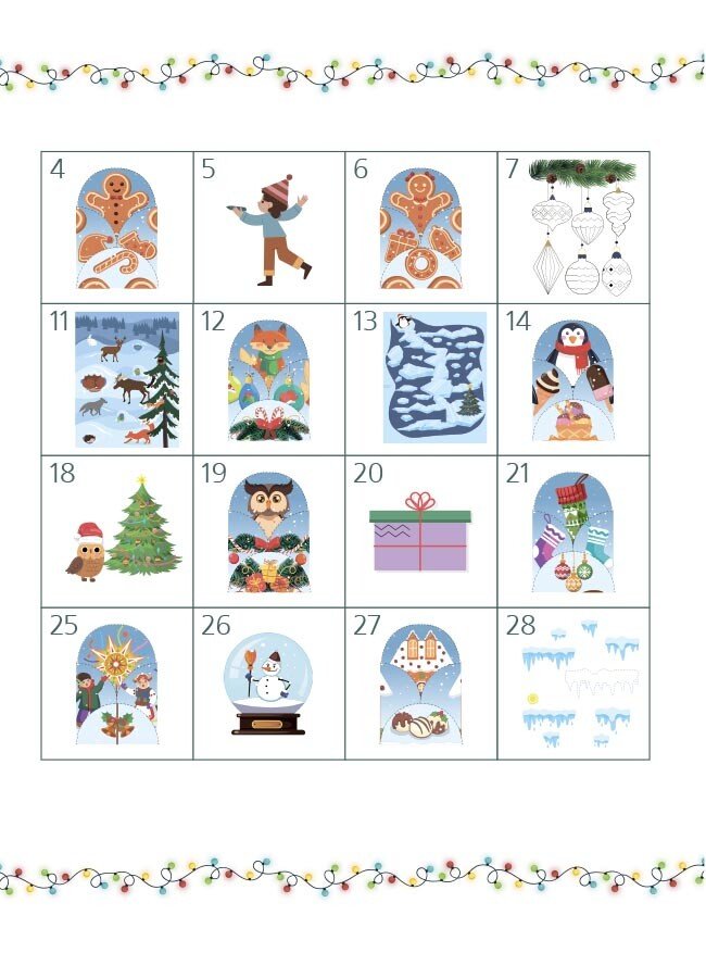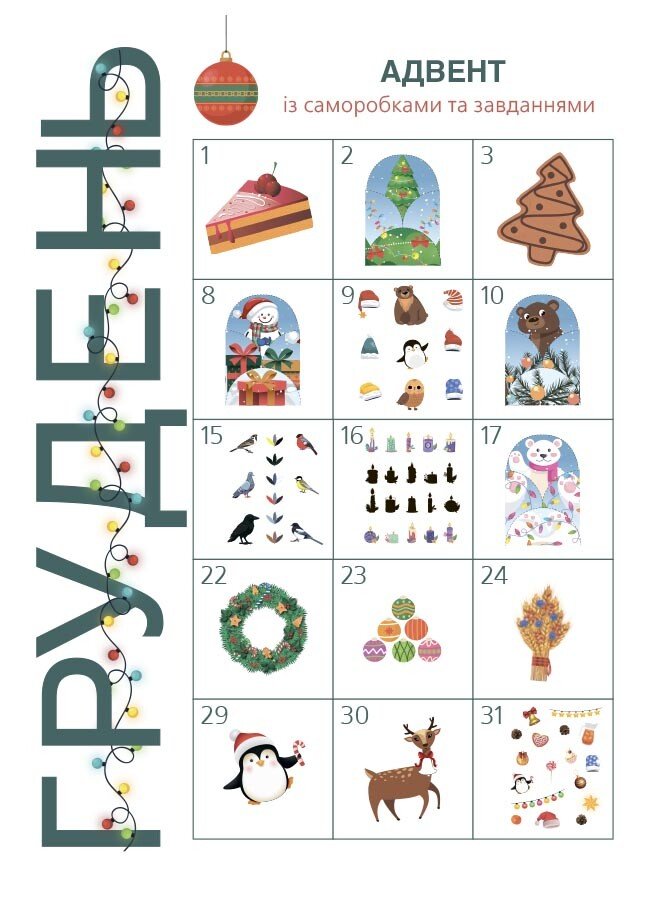 Кожна саморобка перетворюється на конверт, у який потім можна покласти святкову листівку та привітати найрідніших! Наш творчий адвент-зошит допоможе організувати сумісне родинне дозвілля та перетворити очікування свят на справжню зимову пригоду. Розгортайте адвент-зошит та створюйте дива власноруч!