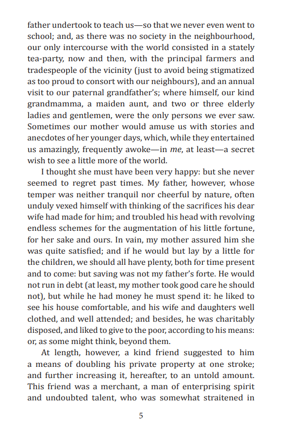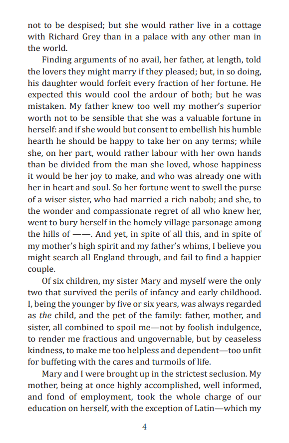 Agnes Grey (1847) by English writer Anne Brontë is the story of a governess. The novel is based on the author’s own five-year experience. Like Charlotte Brontë’s Jane Eyre, the work describes the difficult lives of poor girls who are forced to work for other families.