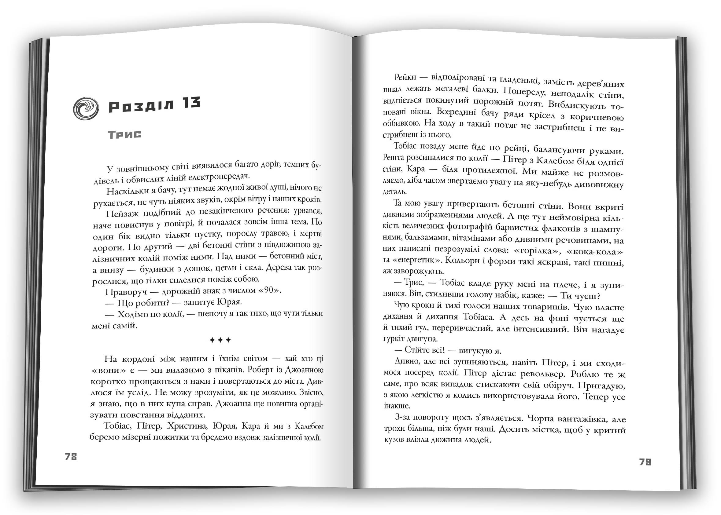 Фракцій більше не існує, і Трис, отримавши шанс пізнати широкий світ за межами паркана, не вагається. Може, саме там на них з Тобіасом чекає нове життя, без брехні й зради. Але світ за парканом виявляється ще небезпечнішим, ніж місто їхнього дитинства. Довідавшись правду, Трис змушена буде зробити ще складніший вибір, і для цього від неї знадобиться вся її мужність, відданість, жертовність і любов.