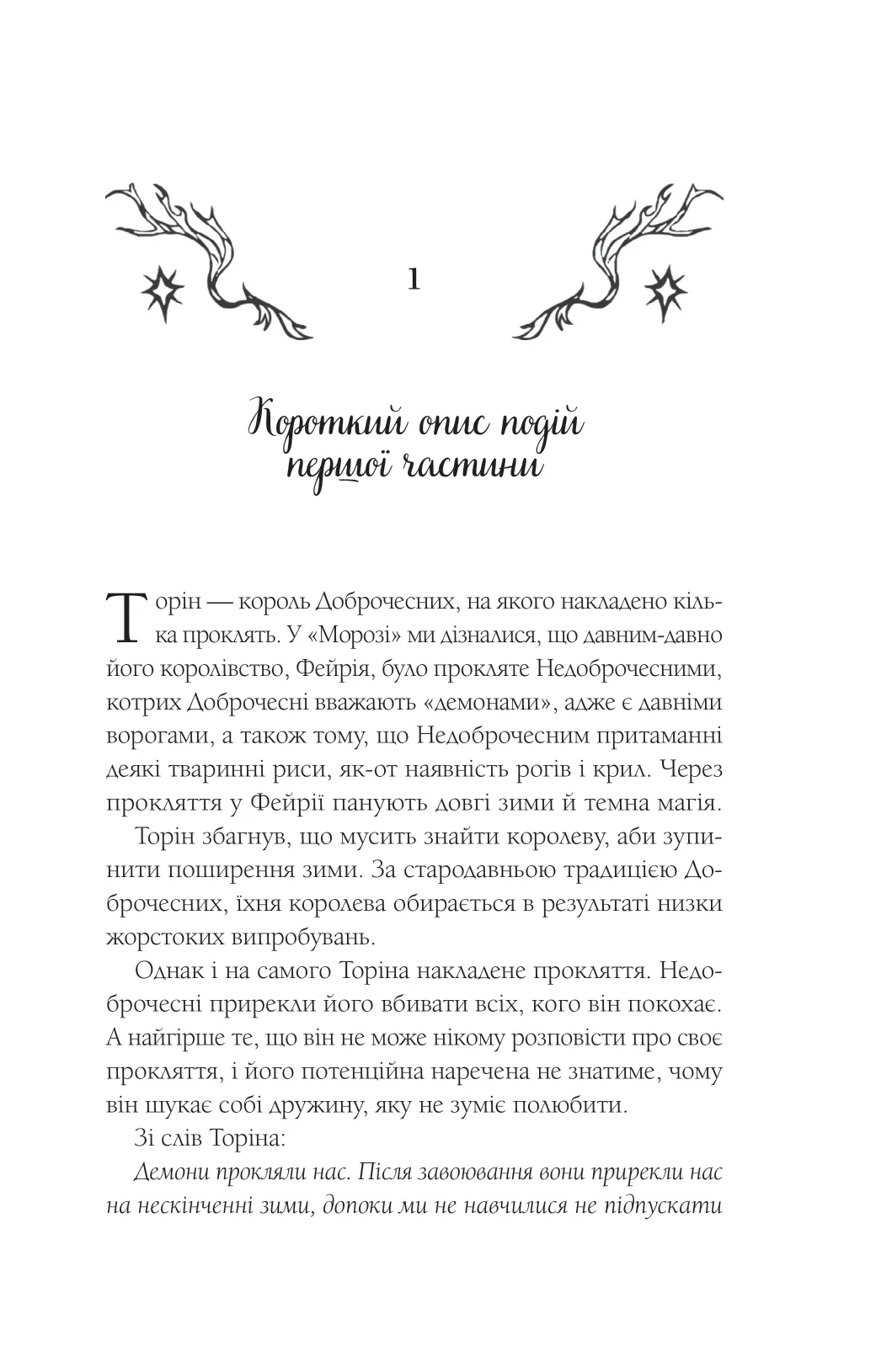 Попри те, що маю роги, я не бажана й тут. Королева Меб звинувачує мене в зраді, а її солдати завдають нам із Торіном нестерпних мук. Щоб вижити мусимо триматися якнайближче одне до одного, навіть якщо це означає спільне ліжко. Кожна мить — солодка й болісна водночас, адже вона може стати останньою для нас, тому що Торін приречений убивати кожну, кого покохає.