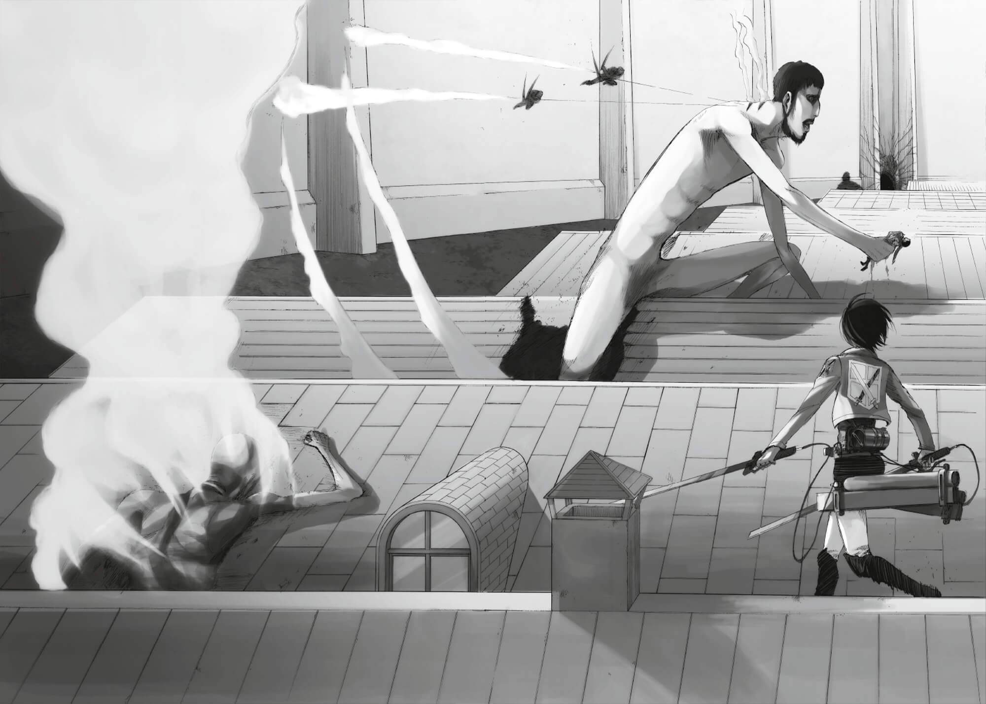 «Атака титанів» — темна фентезі-манґа, створена Хаджіме Ісаямою. Сюжет розгортається в постапокаліптичному світі, де залишки людства ховаються за трьома величезними стінами, щоб захиститися від жахливих істот. Герої вступають до військового корпусу, щоб боротися з титанами, розкривають приголомшливі таємниці їхнього походження та дізнаються про природу світу, в якому вони живуть.