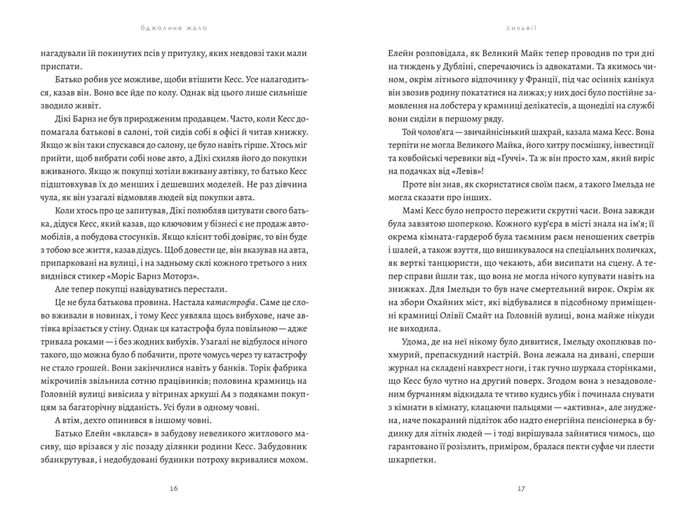 Роман сучасного ірландського прозаїка втягує читача в заплутану трагікомічну історію респектабельної, на перший погляд, родини Барнзів. На тлі апокаліптичних настроїв економічної кризи й занепаду родинної справи Дікі та Імельда борсаються у плетиві зовнішніх викликів, потаємних спокус, родинних травм і внутрішніх химер, їхня вразлива дочка Кесс, яка захоплюється літературою і прагне здобути освіту у Триніті-коледжі, застрягає в алкогольній залежності, а підліток Пі-Джей у світі геймерства й віртуальної реальності. Ця романна історія для читачів, які готові розплутувати світ свідомості героїв, стежити за роєм їхніх думок, почувань, інстинктів і таємниць, а також люблять викличні, іронічні, різноголосі й багатошарові літературні тексти.