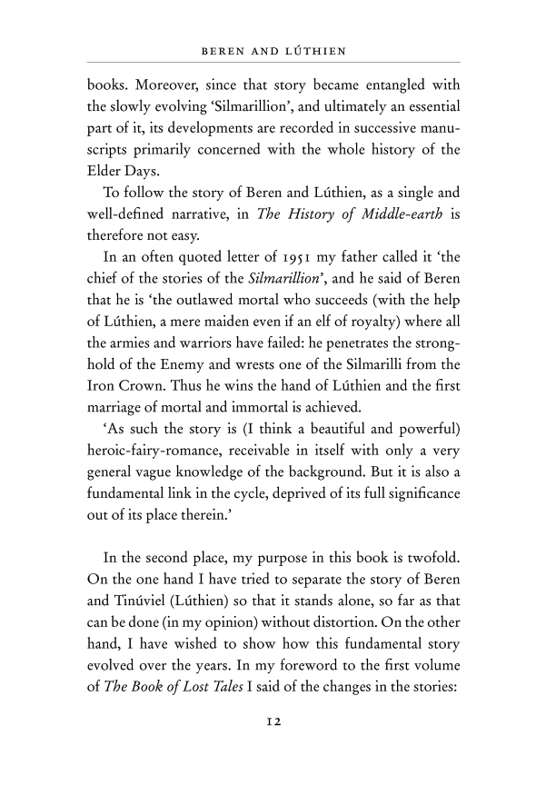 In this book Christopher Tolkien has attempted to extract the story of Beren and Lúthien from the comprehensive work in which it was embedded; but that story was itself changing as it developed new associations within the larger history. To show something of the process whereby this legend of Middle-earth evolved over the years, he has told the story in his father's own words by giving, first, its original form, and then passages in prose and verse from later texts that illustrate the narrative as it changed. Presented together for the first time, they reveal aspects of the story, both in event and in narrative immediacy, that were afterwards lost.