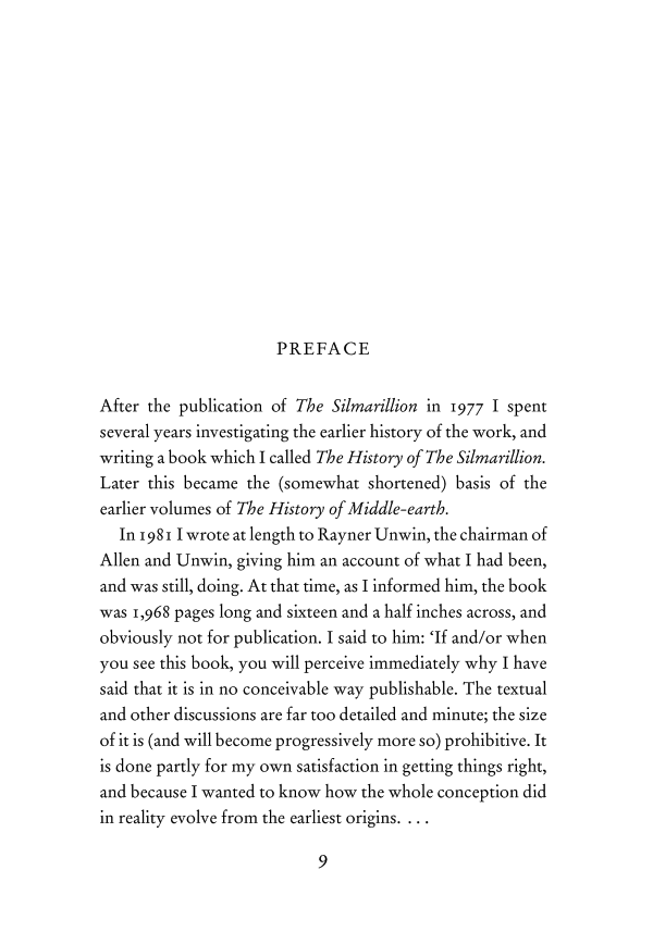 Essential to the story, and never changed, is the fate that shadowed the love of Beren and Lúthien: for Beren was a mortal man, but Lúthien was an immortal Elf. Her father, a great Elvish lord, in deep opposition to Beren, imposed on him an impossible task that he must perform before he might wed Lúthien. This is the kernel of the legend; and it leads to the supremely heroic attempt of Beren and Lúthien together to rob the greatest of all evil beings, Melkor, called Morgoth, the Black Enemy, of a Silmaril.