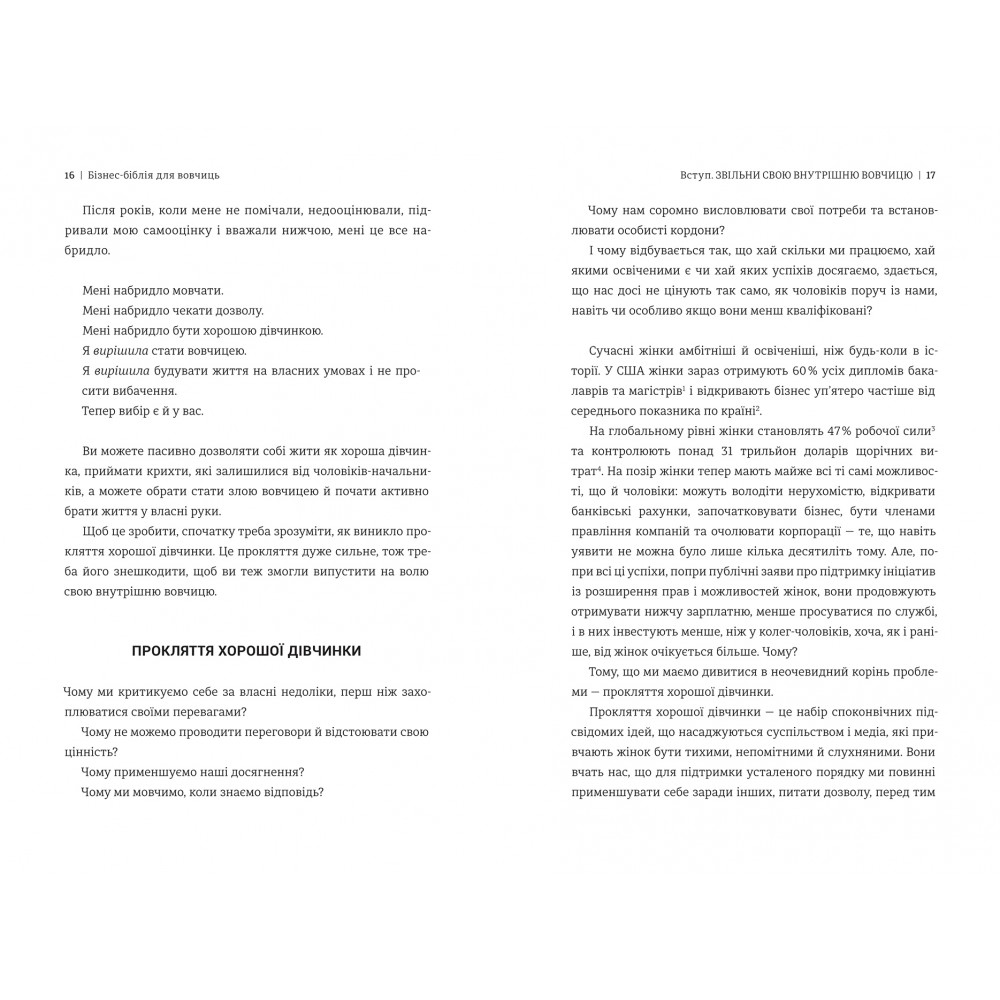 У цій книжці Ліса Кармен Ван — СЕО, інвесторка, чемпіонка США з гімнас- тики, лекторка й колишня хороша дівчинка — ділиться історією станов- лення своєї внутрішньої вовчиці та інструментами, які допомагають.