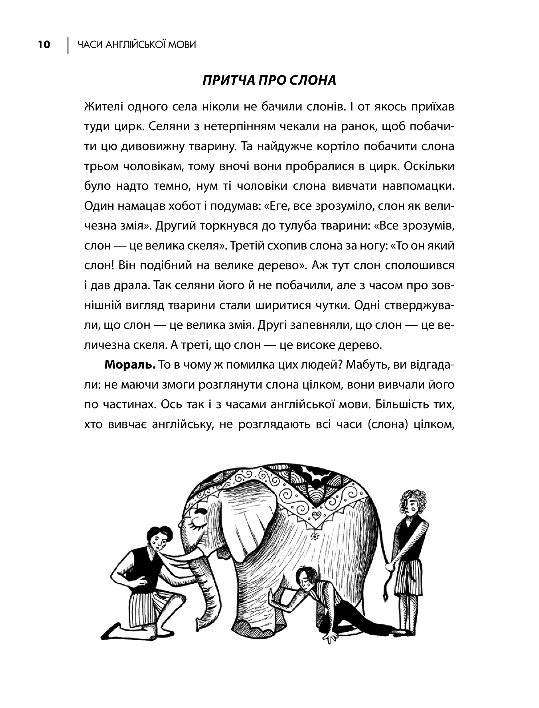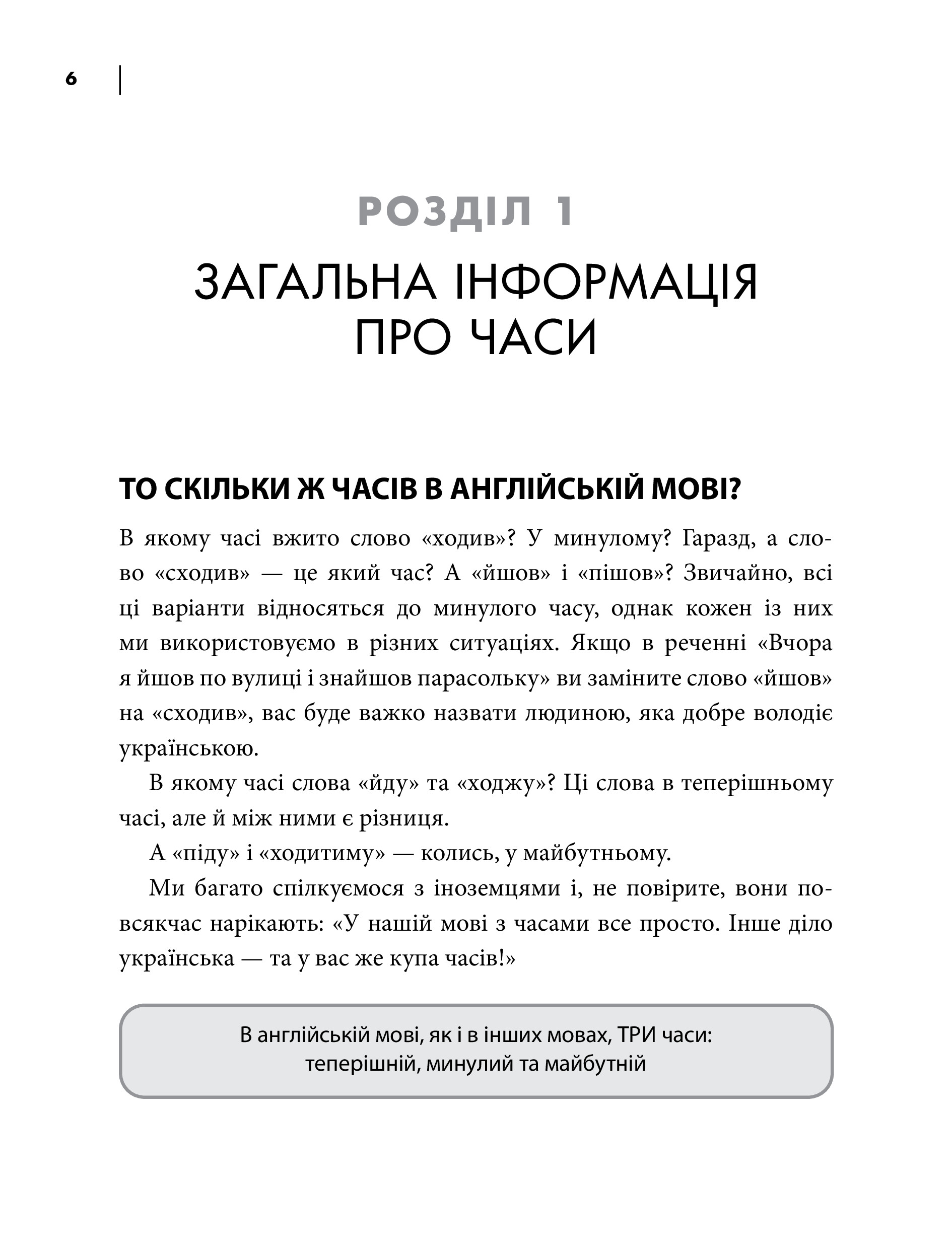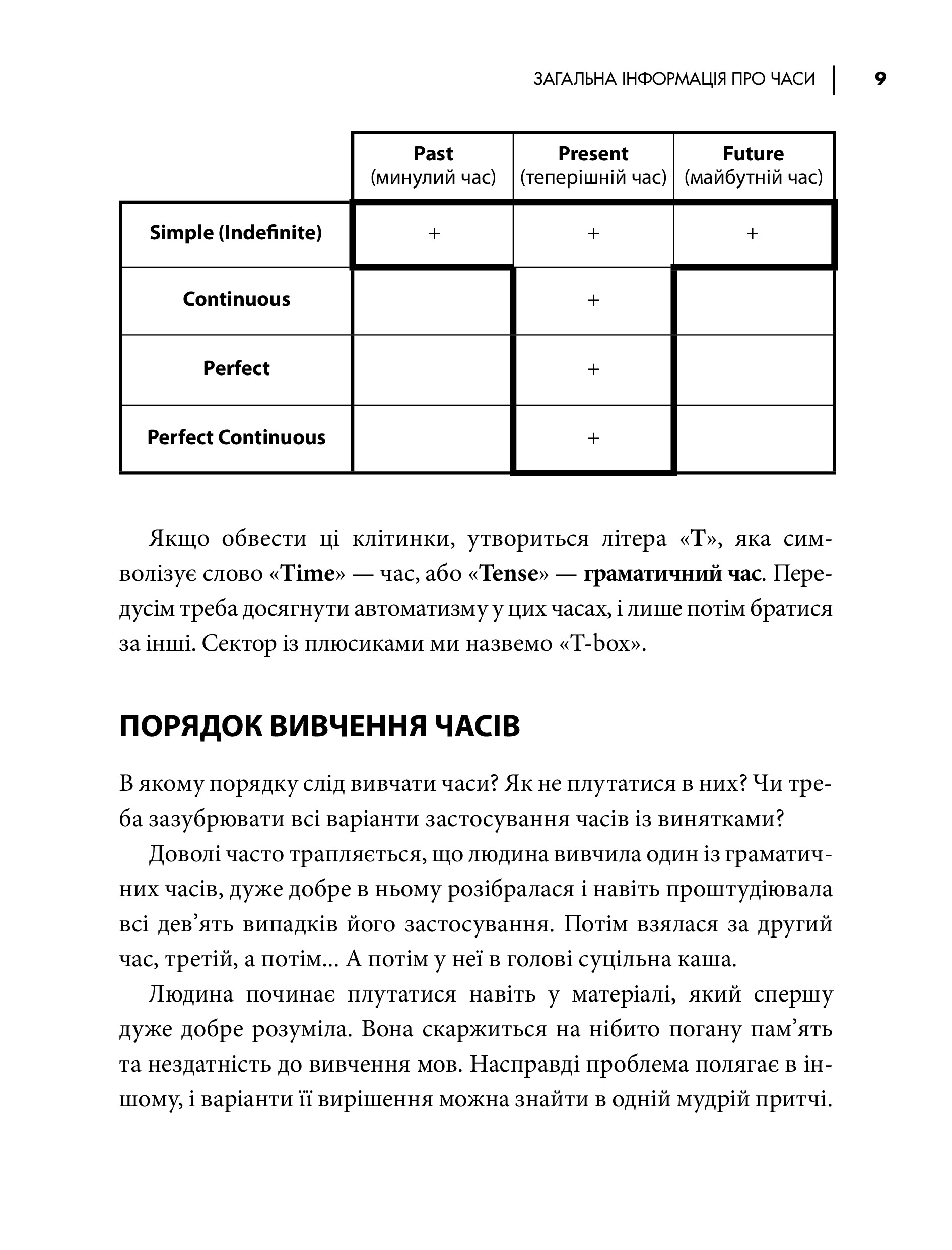 Друга частина книжки — практична, — дозволяє не лише перевірити засвоєння матеріалу, а й до автоматизму довести застосування часів англійської мови.