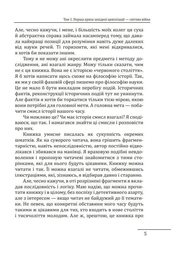 У розділі «Перша криза західної цивілізації — світова війна» автор розглянув передумови, причини і наслідки Першої світової війни — великої війни, «першої грози XX століття, за якою почалися нові й нові катастрофи, і найзначніша з них — російський Жовтень».