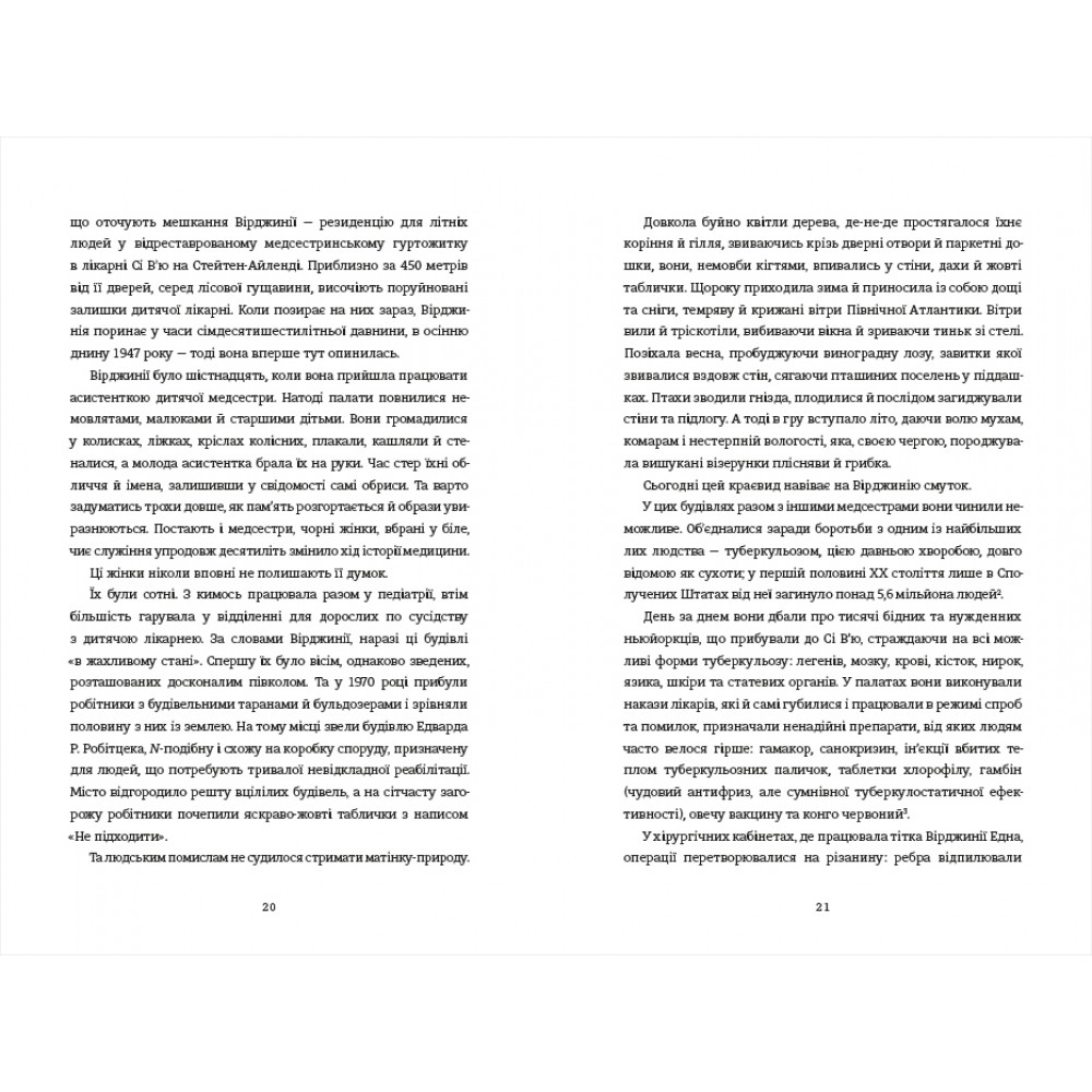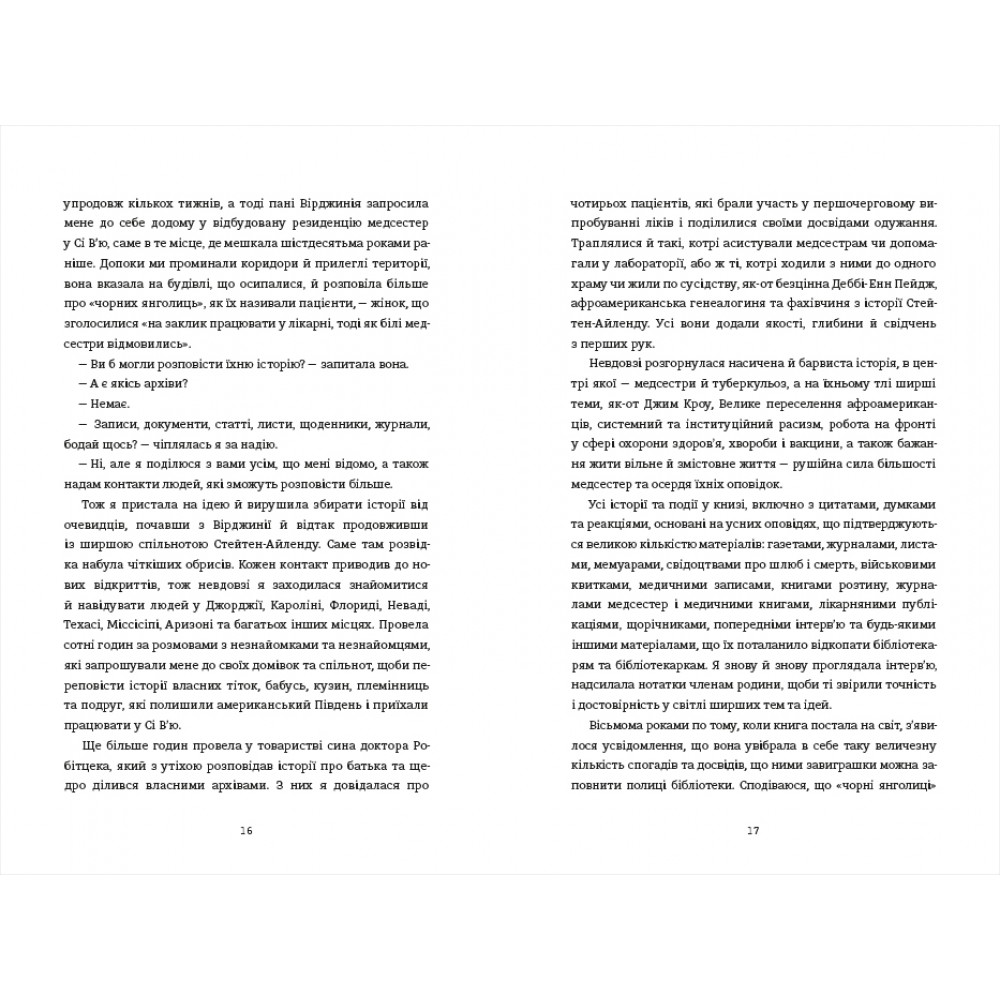 Ця дивовижна правдива історія розгортається від Великої депресії аж до повоєнного періоду й розповідає про безстрашних молодих жінок, яких пізніше називали «чорними янголицями». Протягом двадцяти років вони, ризикуючи життям, працювали в жахливих умовах, доглядаючи найбідніших хворих на туберкульоз мешканців Нью-Йорка, які чекали на смерть або ставали піддослідними кроликами для експериментальних операцій і часто смертельних препаратів. Незважаючи на їхню ключову роль у десегрегації нью-йоркської лікарняної системи і важливу роботу з пошуку ліків від туберкульозу в лікарні Сі В'ю — про медсестер часто забувають. Марія Сміліос відновлює голоси цих надзвичайних жінок і ставить їх у центр захопливої історії, основаної на реальних подіях.