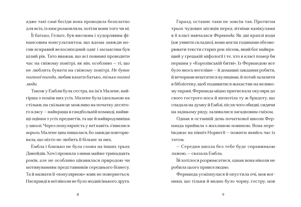Тринадцятирічна Ембла Дикейд живе у сучасному Осло й навіть не здогадується, що дивовижі — зовсім поруч. Вона завжди відчувала себе інакшою, і одного дня її здогади справджуються: Ембла відкриває у собі дикочари та дізнається про існування тварин із таємничими силами, здатних перетворюватися на людей. Ворони, лосі, лисиці й сови ведуть невидиму боротьбу за владу над природою, і дівчина раптово опиняється у самому вирі цих подій. Чи може бути так, що Ембла — одна з них? І як тепер зміниться її життя?