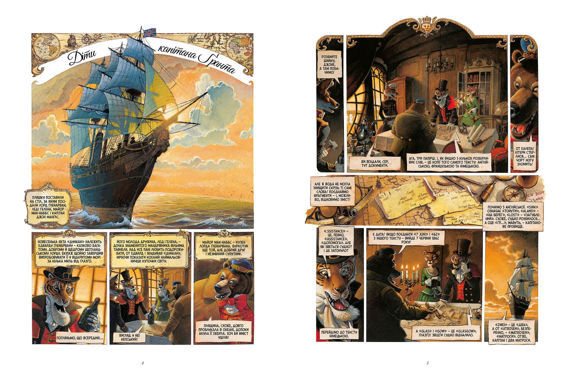 Сповнені благородства й авантюрного духу, Ґленарвани вирушають на пошуки мореплавця. До експедиції приєднуються діти капітана — мужня Мері та юний Роберт, — а також ексцентричний учений-роззява Жак Паганель. Так починається насичена подіями подорож на край світу…