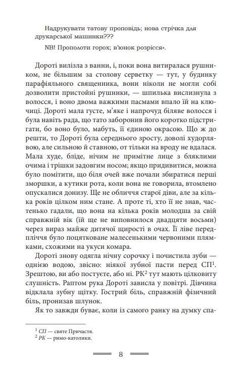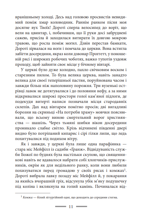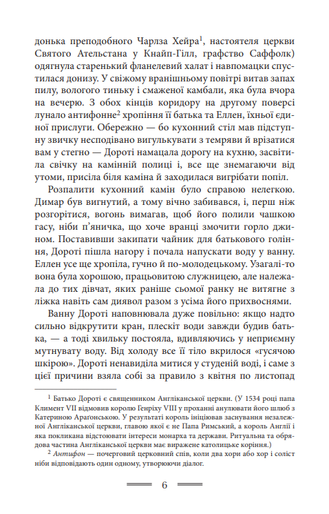 Так би й не побачила Дороті у своєму житті нічого, окрім маленького англійського містечка, без жодних перспектив бодай колись змінити чи навіть розірвати осоружне коло свого не надто радісного життя, якби не дивна випадковість, яка вириває її із цієї сірої одноманітності і жбурляє у вир геть іншого життя – тяжкого, химерного, виснажливого, але такого справжнього…