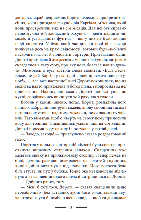 Дороті Хейр – донька превелебного Чарлза Хейра з усіма класичними наслідками на взірець ведення домашнього господарства, порядкування скромним церковним бюджетом, догляду за часто дратівливим і невдячним батьком і обов’язковими відвідинами пастви Англіканської церкви, яка поступово здає свої позиції серед вірян, поступаючись модернішим конфесіям, які не настільки відстали від віянь часу. А ще Дороті Хейр досі незаміжня, хоча вже невдовзі переступить поріг, який відділяє молодість від зрілості, що, звісно, не додає їй оптимізму щодо перспектив свого подальшого життя.
