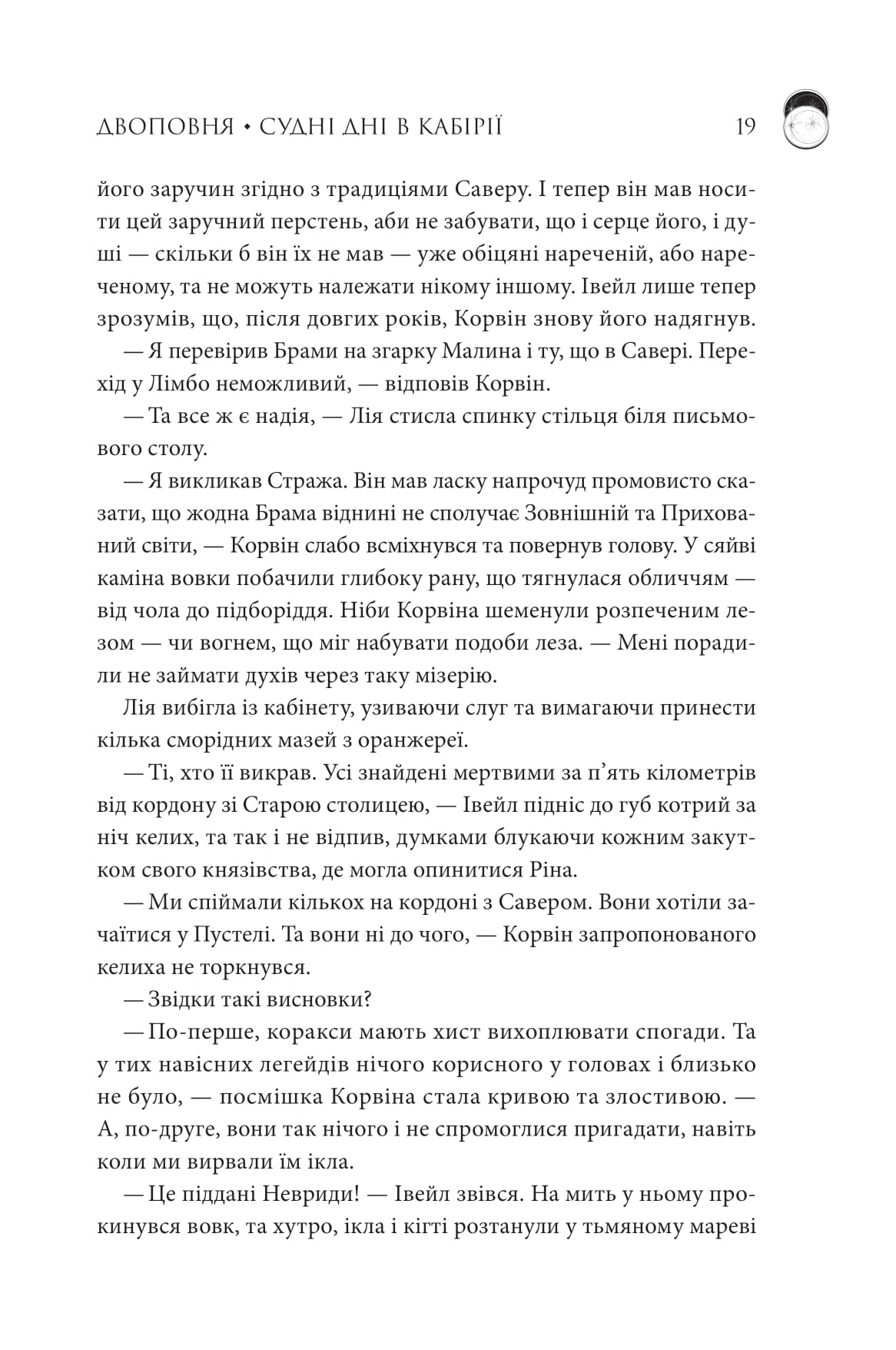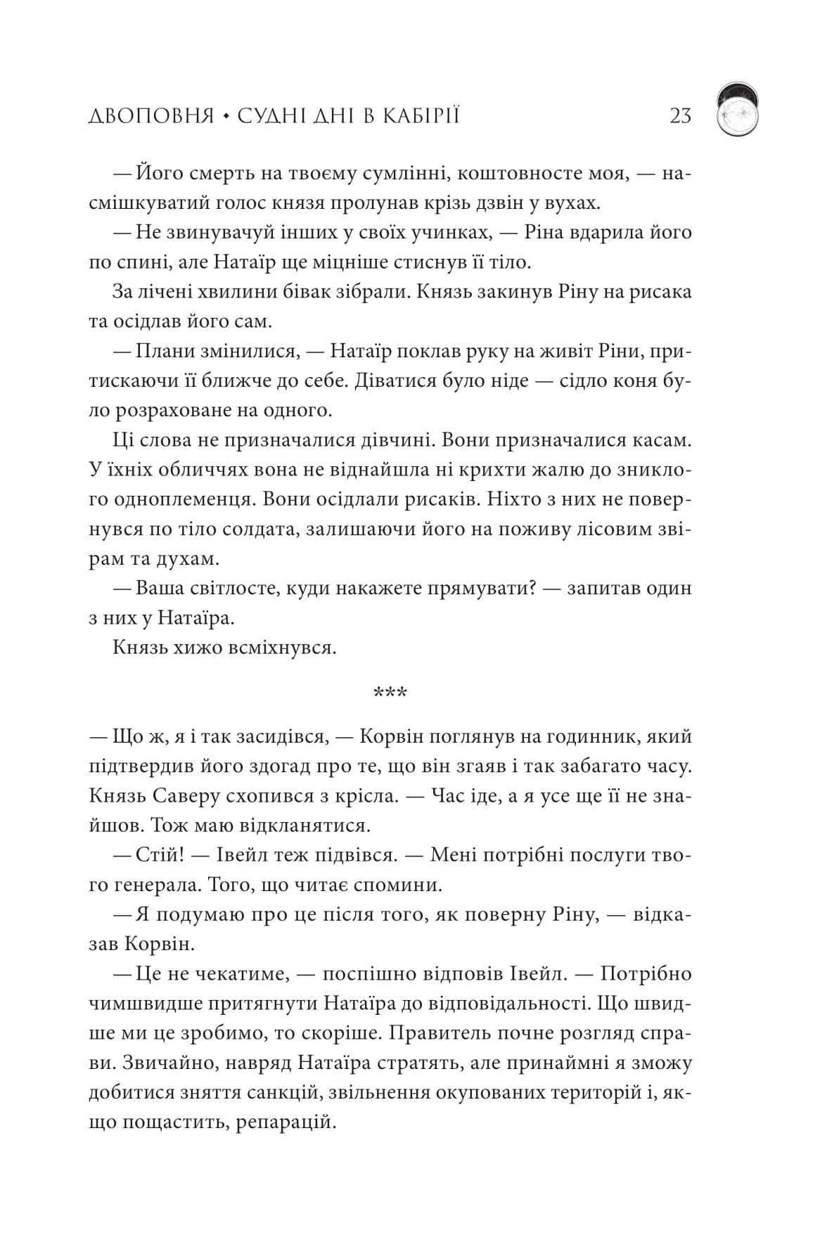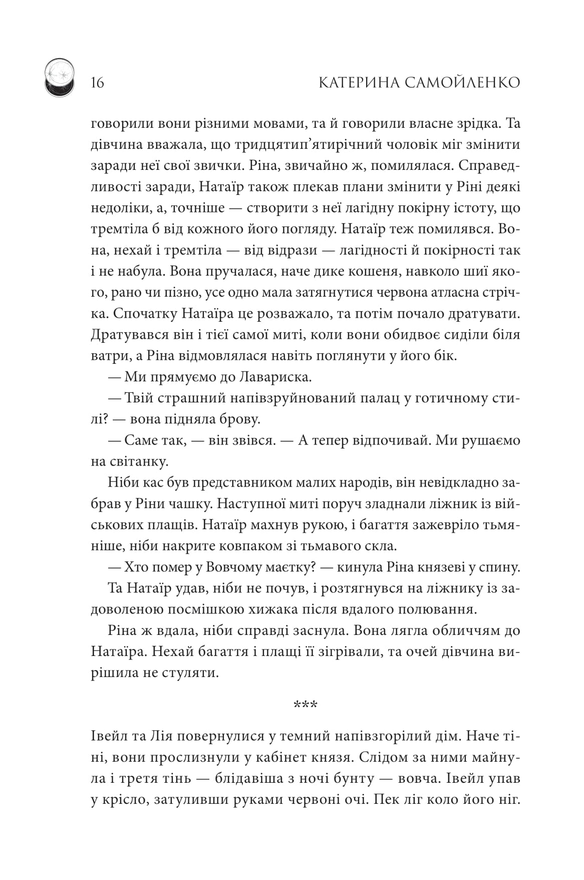Найбільший страх Ріни справдився: вона опинилася сам на сам із Натаїром, замкнена в чорних холодних стінах Лавариску. Допомоги від Корвіна чи Івейла чекати не варто: перший, найімовірніше, загинув, а другий зрадив її.