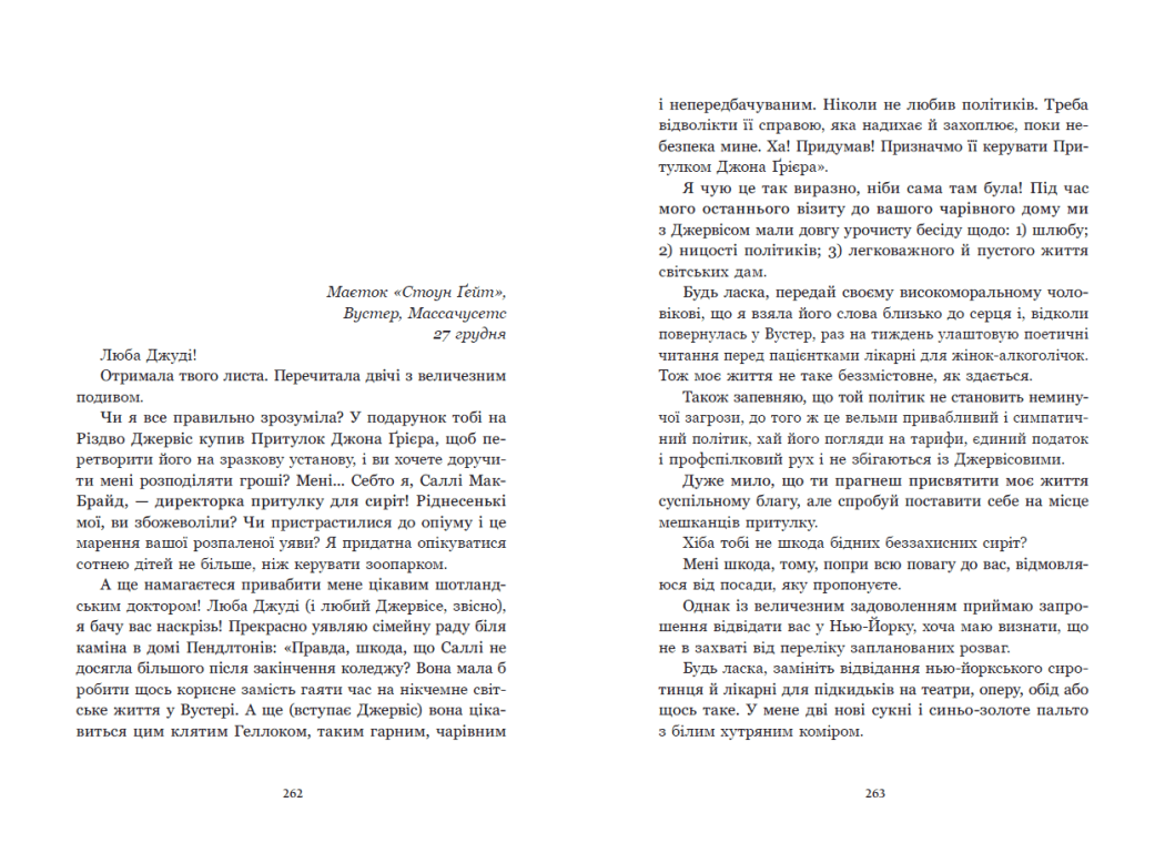 Саллі Макбрайд, найкраща подруга Джуді Ебботт, очолює притулок для сиріт. Вона не тільки має щодня долатитруднощі через виховання дітей і управлінні персоналом,а й суспільні упередження щодо жінок. А ще обрати власне майбутнє, бо на її серце претендує не один гідний джентльмен…