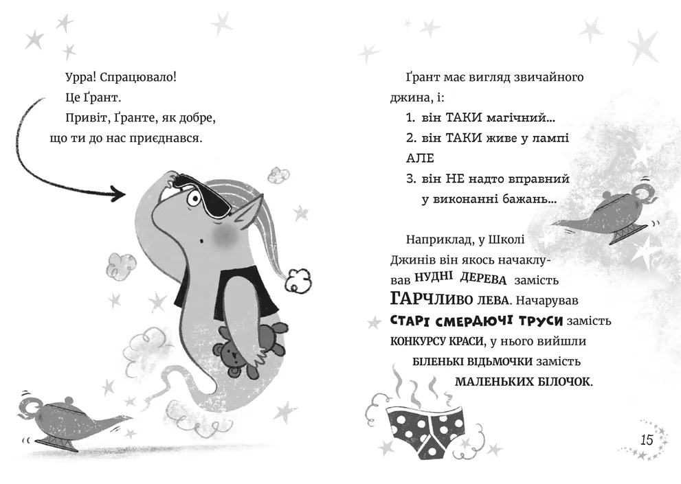 Ґрант — джинчик, якого вигнали зі Світу Джинів через прикру помилку, згодом опиняється на Землі. Шукаючи новий дім, він зустрічає велетенського песика Мацьопчика, який загубився і хоче знайти свого господаря. Ґрант вирішує допомогти новому другу, і разом вони вирушають у кумедні та чарівні пригоди, повні джинівських витівок і сміху.