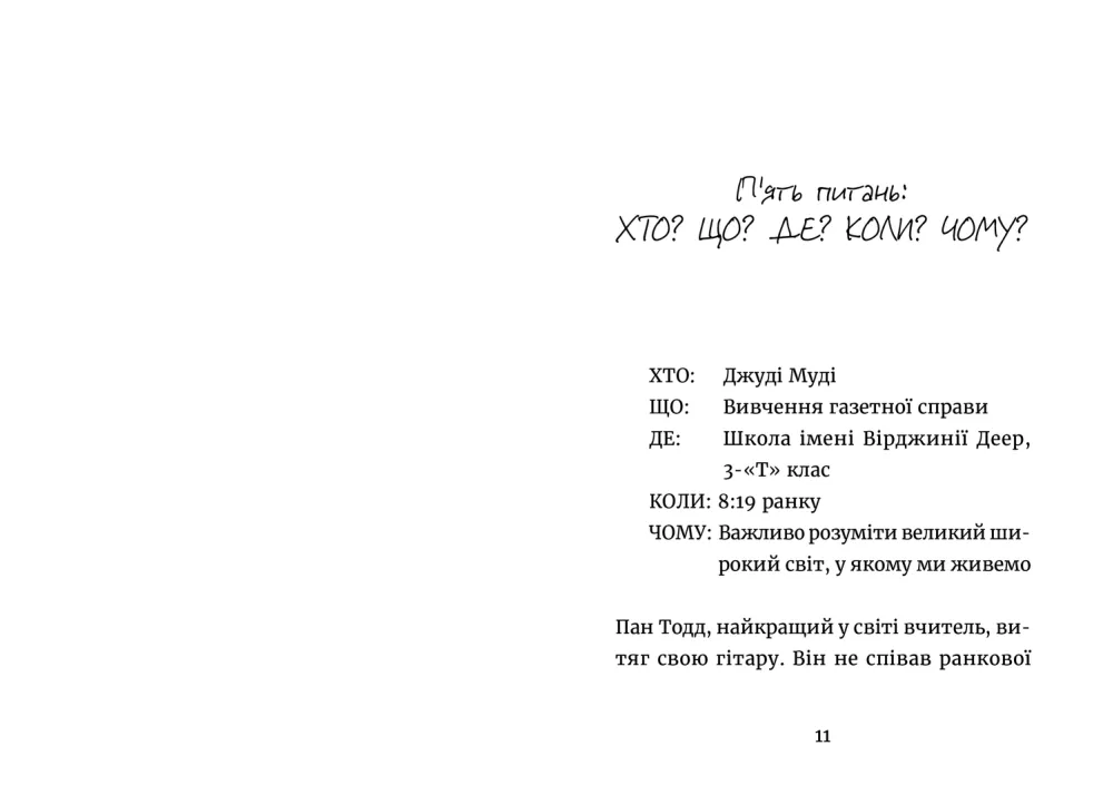 У школі діти знайомляться з основами журналістики. Виконуючи завдання, Джуді Муді раптом усвідомлює, що навколо — суцільний потік тривожних новин: зміни клімату, небезпечні віруси, морські черепахи, яким шкодять пластикові соломинки… Але ж людям потрібні не лише такі повідомлення, а й світлі, радісні історії. Тож Джуді вирішує стати репортеркою хороших новин і створює власну газету — «Усміхнені новини». У її першому випуску на читачів чекають статті, кросворд, комікс, рецепт та інші цікавинки.