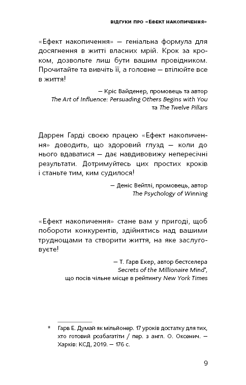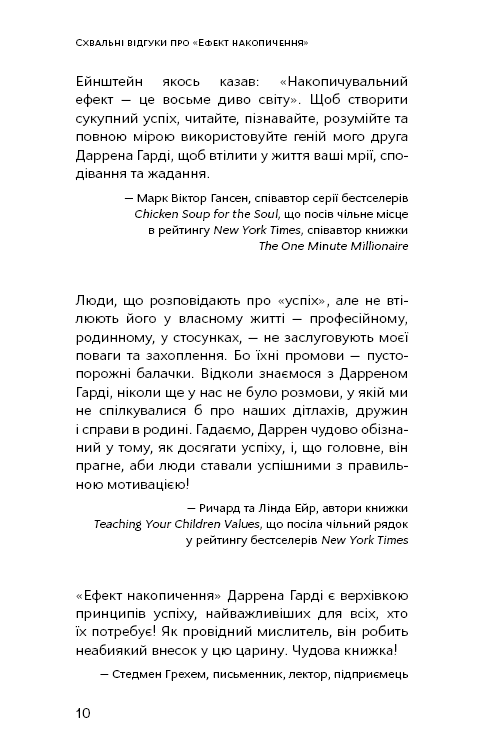 Маленькими повсякденними кроками ви дійдете або до бажаного життя, або до масштабної катастрофи. Даррен Гарді вивів квінтесенцію фундаментальних принципів, які посприяли найфеноменальнішим досягненням у бізнесі, стосунках тощо.