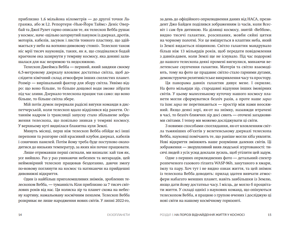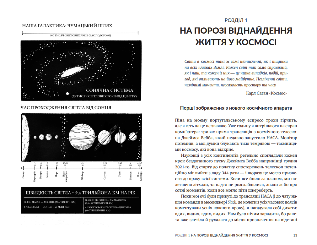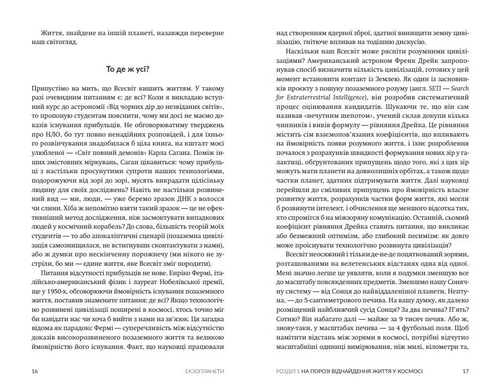 Засновниця Інституту Карла Сагана в Корнельському університеті, астрофізикиня Ліза Калтенеґґер зібрала команду вчених різних галузей із метою розробити універсальний інструментарій для пошуку придатних для життя світів за межами Сонячної системи. У своїй книжці вона демонструє, як можна використати нашу рідну Землю в якості Розетського каменя й у такий спосіб зробити пошук більш предметним. Із заразливим ентузіазмом Калтенеґґер описує найдивовижніші з нещодавно відкритих екзопланет — планети, вкриті океанами лави, самотні мандрівниці, загублені у космосі, водяні гіганти, в небі яких сяють декілька сонць. Імовірність, що на якомусь із цих світів буяє життя, — чимала. Просто зараз їхні мешканці можуть дивитися в наш бік, замислюючись над тим самим запитанням: а що як ми не одні? Й Ліза Калтенеґґер указує нам шлях, як ці світи відшукати.