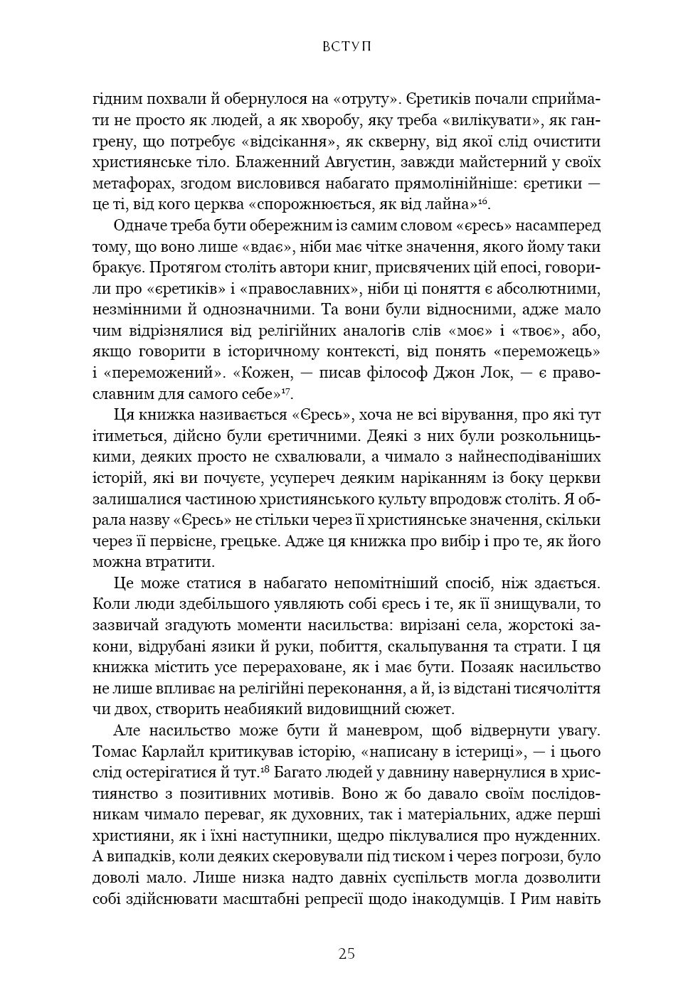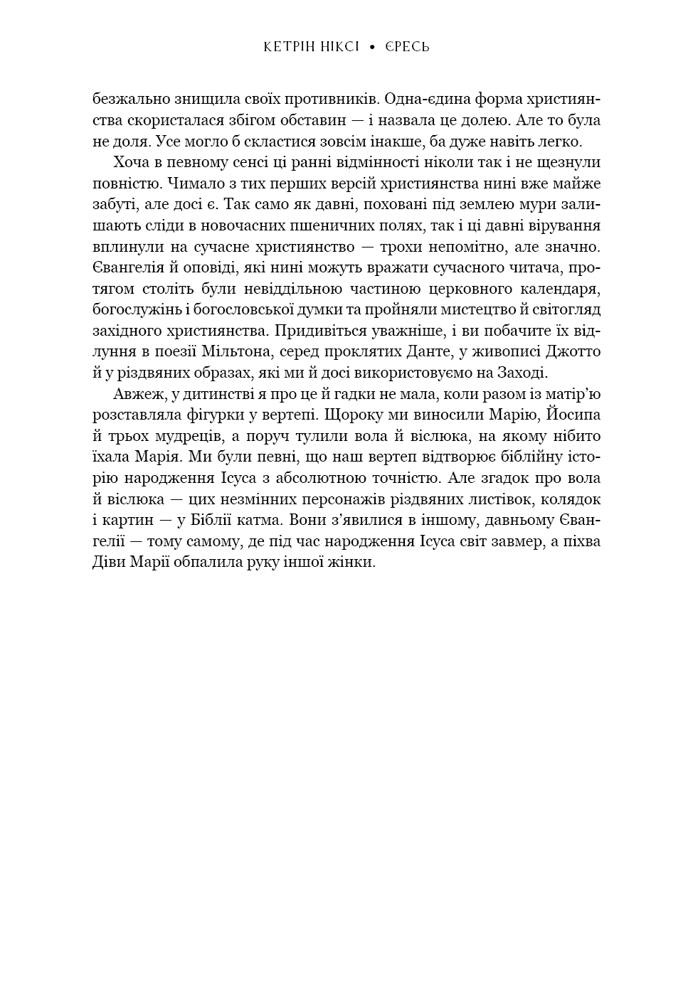 Всупереч ученням сучасної церкви, у перші кілька століть існування християнства не існувало єдиної думки щодо того, ким був Ісус і чому він мав значення. Натомість було багато різних месій. Один Христос мав брата-близнюка й подорожував до Індії; інший спілкувався з драконами. Ще один, особливо жахливий, Христос зневажав своїх батьків і вбивав тих, хто йому противився. Крім того, в перші роки I тисячоліття було багато інших рятівників людства, багато синів богів, які зцілювали хворих і ставили на ноги лежачих. Але з поширенням християнства їх визнали неприйнятними, навіть єретичними, і вони зникли з поля зору. Книга «Єресь» пропонує ознайомитися з різними версіями Христа, які існували в ранніх християн, і з процесом еволюції та знищення «зайвих», завдяки якому Ісус став єдиною значущою постаттю християнства, яку ми знаємо сьогодні.