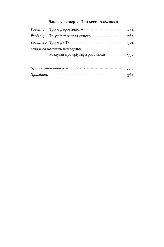 У цьому ґрунтовному дослідженні Карл Трумен простежує, як філософські течії, романтизм, психоаналіз, соціальні й політичні рухи XIX–XX століть і технологічний прогрес сформували нове розуміння вибору й автономії особистості. Кульмінацією цього процесу стала сексуальна революція 1960-х, що змінила норми сексуальної поведінки.