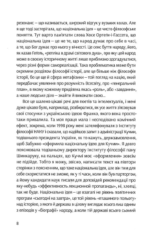 Написана в останній рік існування СРСР і вперше видана 1992 року, книга Оксани Забужко «Філософія української ідеї та європейський контекст: франківський період» поклала початок постколоніальному переосмисленню національної спадщини в гуманітарній думці незалежної України. Це перша праця, у якій філософія національної ідеї розглядається як самостійна інтелектуальна течія, що сягає далеко за межі політології — до питань про сутність і сенс національного буття. На широкому історико-культурному матеріалі, авторка досліджує місце цієї течії в європейській — і, спеціально, українській — свідомості новітнього часу (ХІХ — поч. ХХ ст.), окремо зупиняючись на постаті «Мойсея модерної України» — І. Франка.