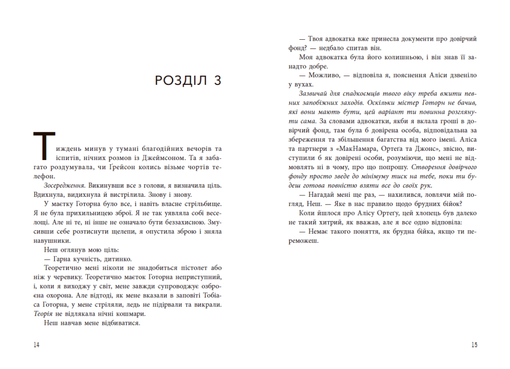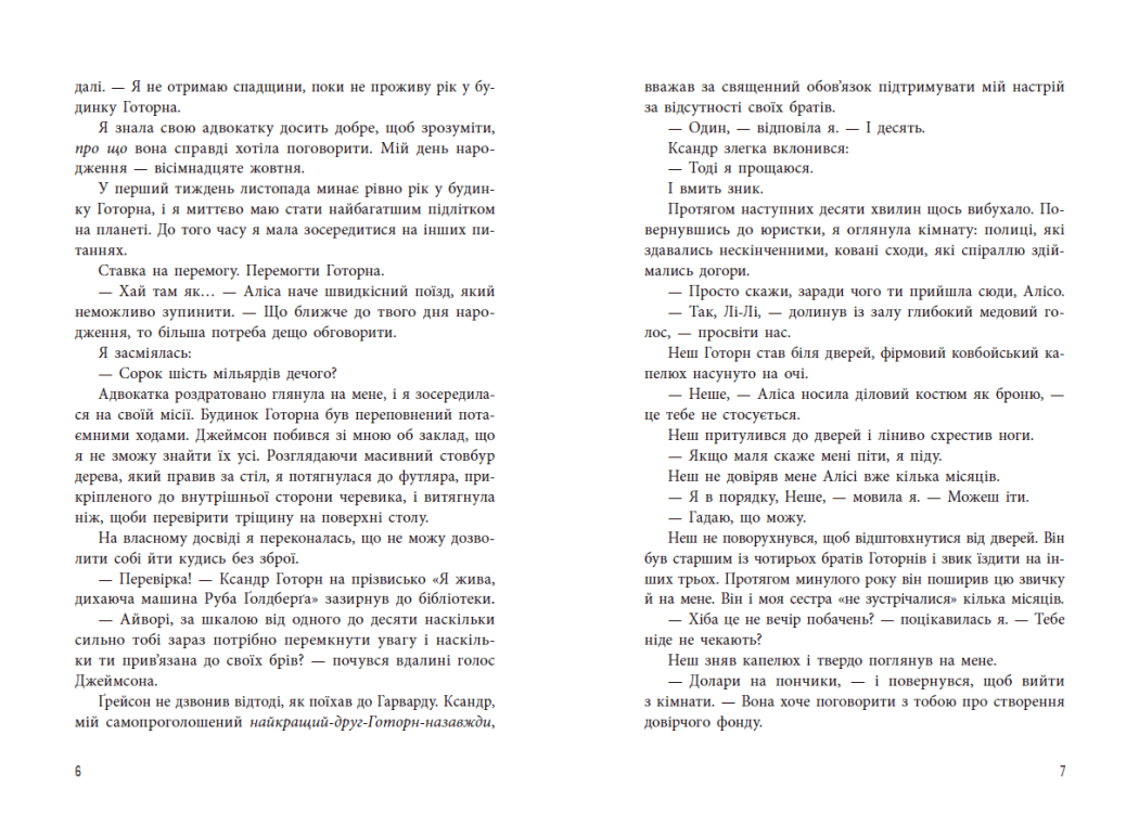 У третій частині циклу «Ігри спадкоємців» неперевершеної майстрині загадок і несподіваних сюжетних поворотів Дженніфер Лінн Барнс — любов, кров і величезні статки! Рік у будинку Готорна добігає кінця, але клубок давніх таємниць, зрад і злочинів, що має розплутати Айворі, сплітається ще тугіше. На кону життя знайденої та знову втраченої рідної людини. Щоб урятувати його, треба викрити впливових ворогів, які прагнуть перетворити спадкоємців на сліпе знаряддя, і покласти край кривавим відголоскам минулого. Айворі готова ризикнути й розіграти гамбіт — поступитися малим, щоб отримати все!