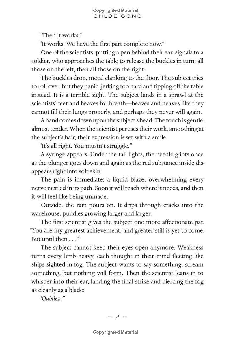 Four years ago, Rosalind Lang was brought back from the brink of death, but the strange experiment that saved her also stopped her from sleeping and aging - and allows her to heal from any wound. In short, Rosalind cannot die. Now, desperate for redemption for her traitorous past, she uses her abilities as an assassin for her country.