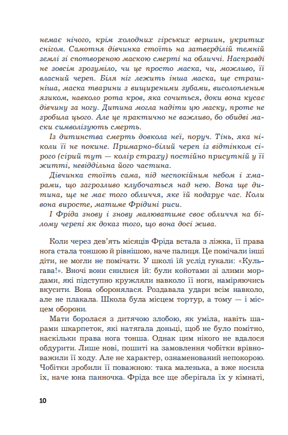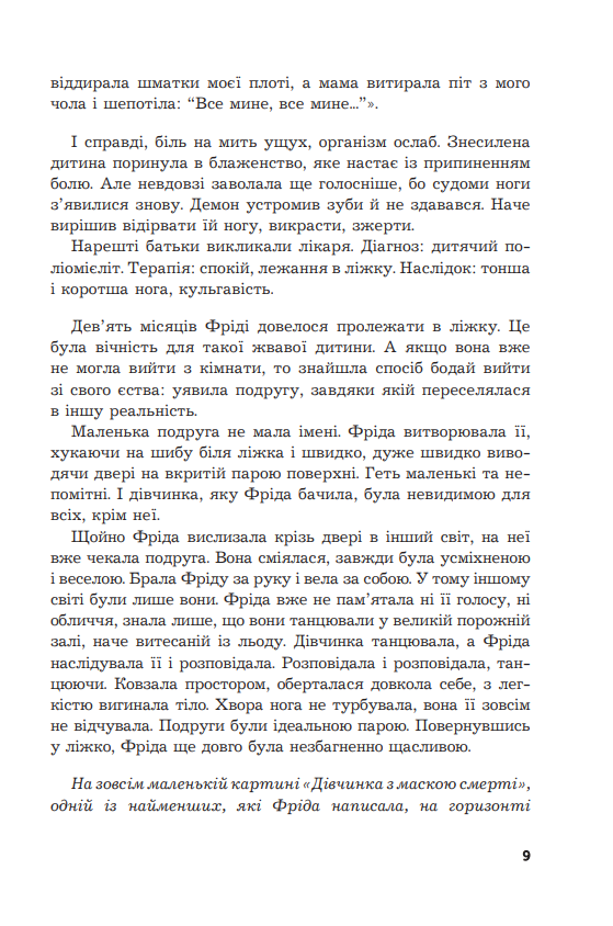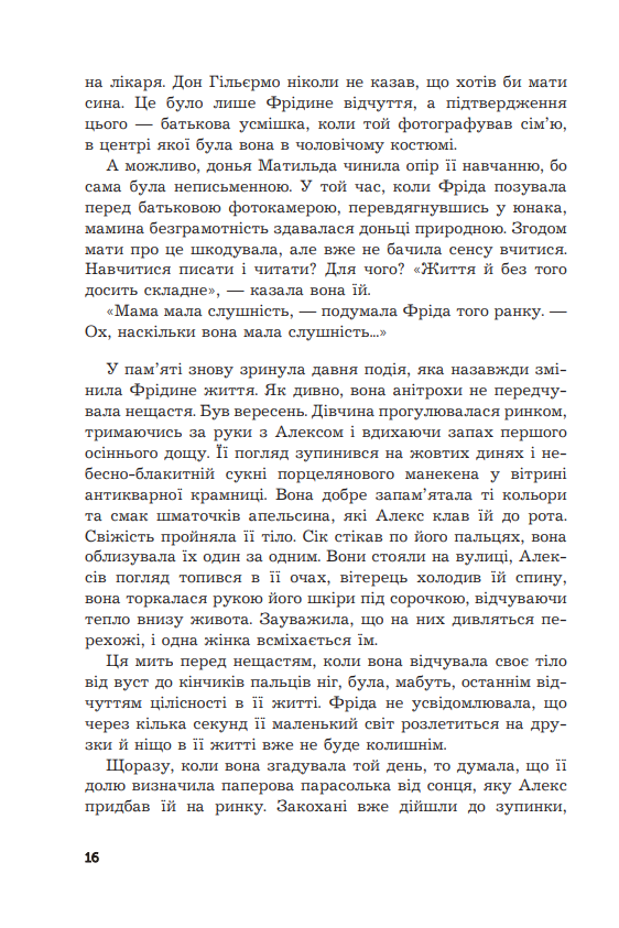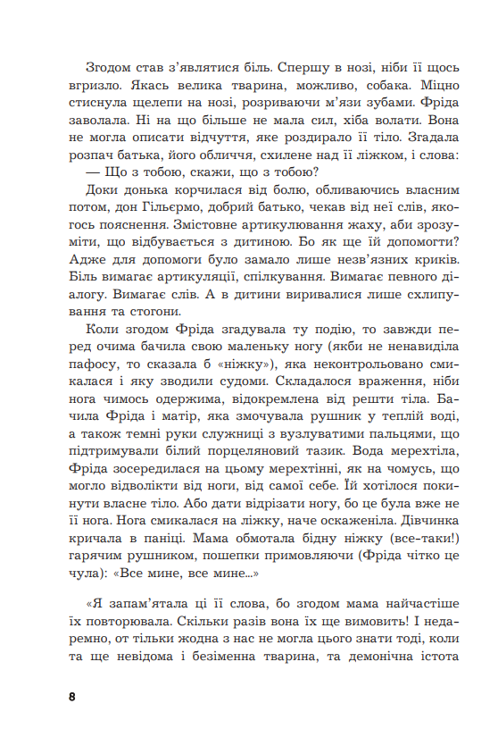 У своїх картинах, якими захоплювався славетний сюрреаліст Андре Бретон, Фріда Кало говорила про біль, що прикував її до ліжка. Саме завдяки чи, радше, всупереч болю вона почала малювати, і саме про це й розповідає Славенка Дракуліч у своєму вражаючому романі.