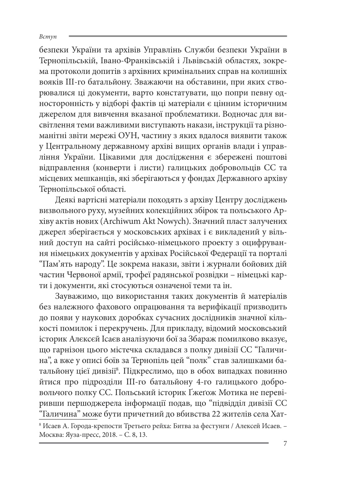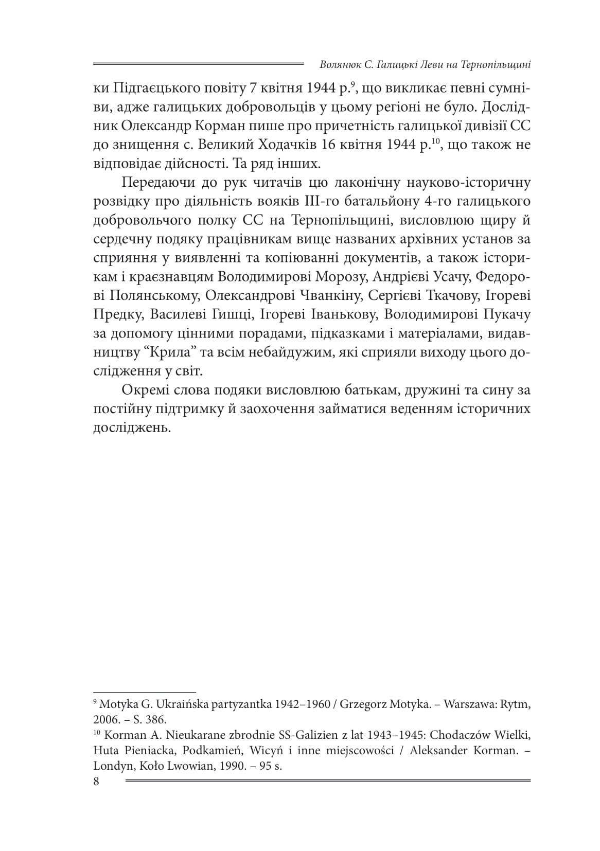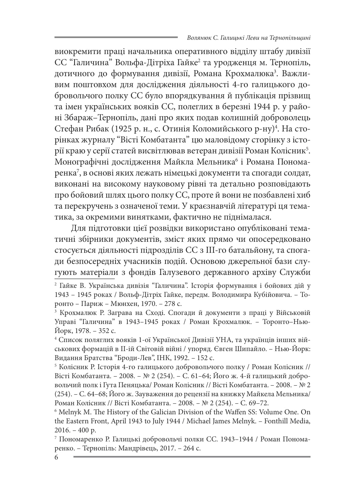 Розвідка присвячена перебуванню ІІІ-го батальйону 4-го галицького добровольчого полку СС на Тернопільщині у лютому – квітні 1944 р. У ній розповідається про антипартизанські операції, сутички і бої з Червоною армією та звернено увагу на відносини між українським підпіллям та вояками батальйону.