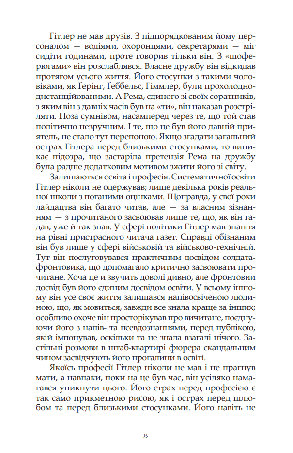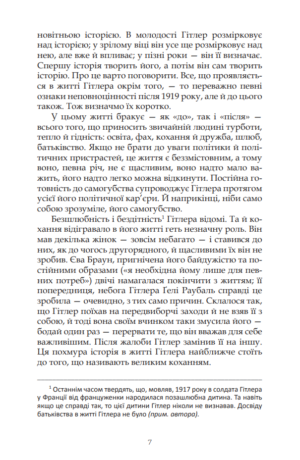 «Гітлер. Примітки до біографії» – найвідоміша книжка Себастіана Гаффнера, в якій він у лаконічній формі аналізує життєвий та політичний шлях Адольфа Гітлера, висуває сміливі припущення щодо неоднозначних та химерних поворотів історії Другої світової війни та намагається подати об’єктивний аналіз постаті Гітлера і його значення в історії Німеччини і всього світу, уникаючи при цьому поширеної практики сліпої та неконструктивної демонізації цієї одіозної історичної постаті, яка відвертає увагу від виваженого аналізу найпринциповіших помилок та хибних поглядів Гітлера.