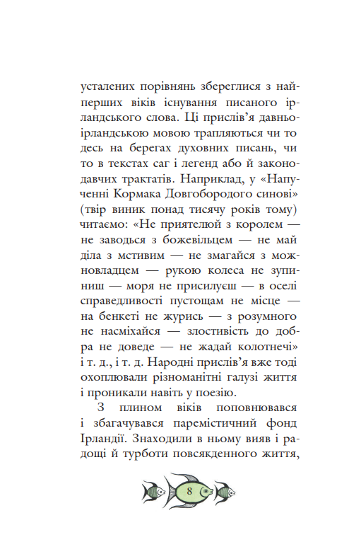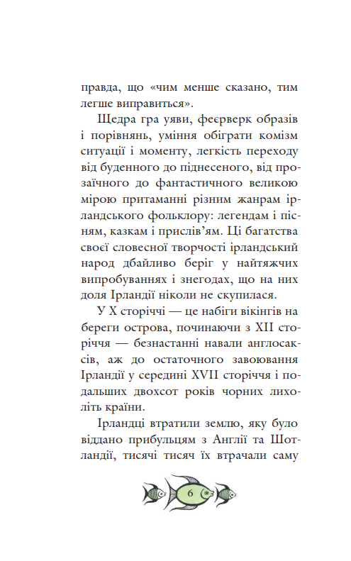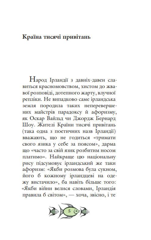 В книжці зібрано найкращі прислів’я та приказки, що відображають багатовікову історію і побут ірландського народу, його прагнення свободи і щастя.