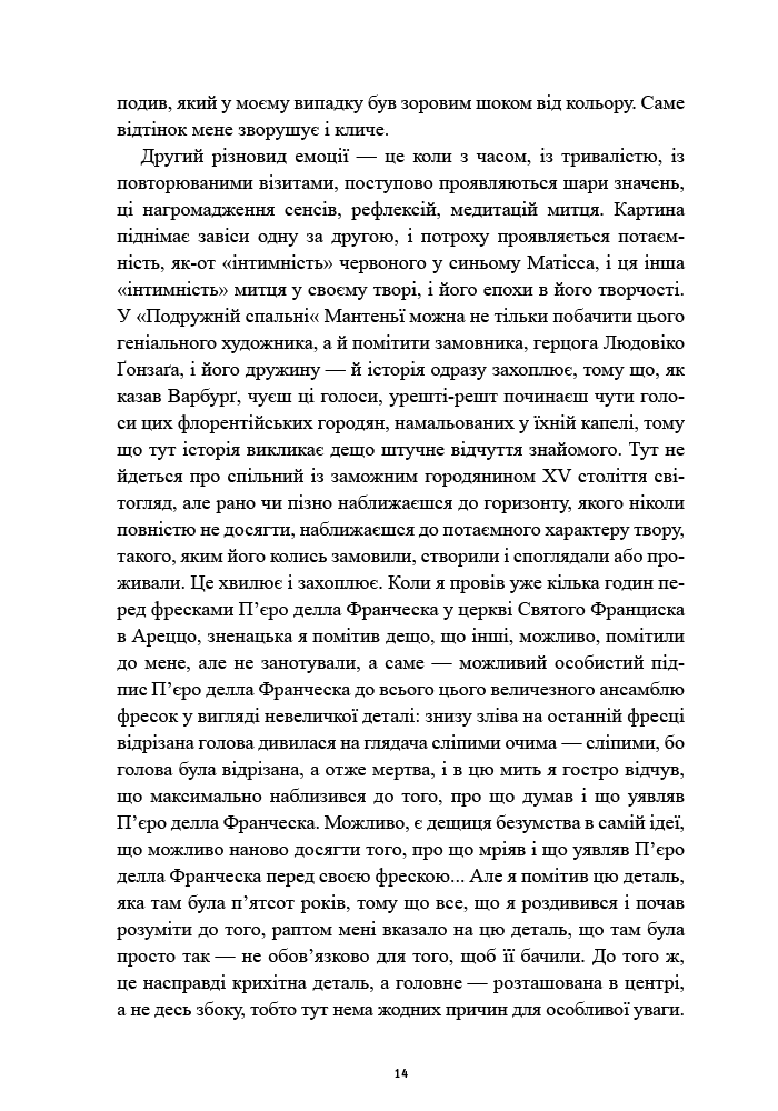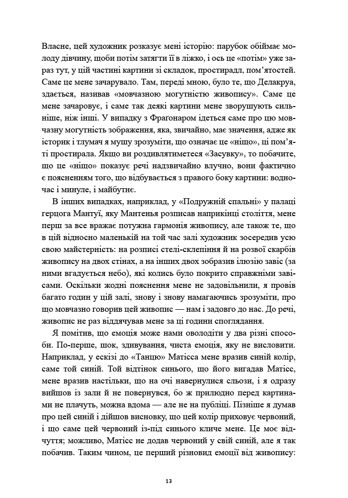 Книжку «Історії картин» укладено на основі циклу з двадцяти п’яти передач, трансльованих по радіо France Culture під назвою «Історії картин» влітку 2003 року.Даніель Арасс із притаманним йому ентузіазмом, сміливістю й ерудицією проводить нас через шість століть історії живопису — від винайдення перспективи до зникнення фігури. Звертаючись до основоположних питань (перспектива, сюжет Благовіщення, роль деталі, піднесення й занепад анахронізму, реставрація й умови огляду витворів на виставках) він інтелектуально і пристрасно оживлює ключові постаті й стилі: Леонардо да Вінчі, Мікеланджело, маньєризм, Вермеєр, Інґрес і Мане.Його аналіз постійно підживлюється конкретними прикладами, кульмінацією яких стають дуже специфічні аспекти сучасного мистецтва. Саме так, через тонкі й відкриті прочитання, які він пропонує, Даніель Арасс прищеплює смак до бачення й переосмислення великих моментів живопису — дивуючи, пробуджуючи й залучаючи нас до справжньої магії свого інтелекту, незмінно приправленого гумором.