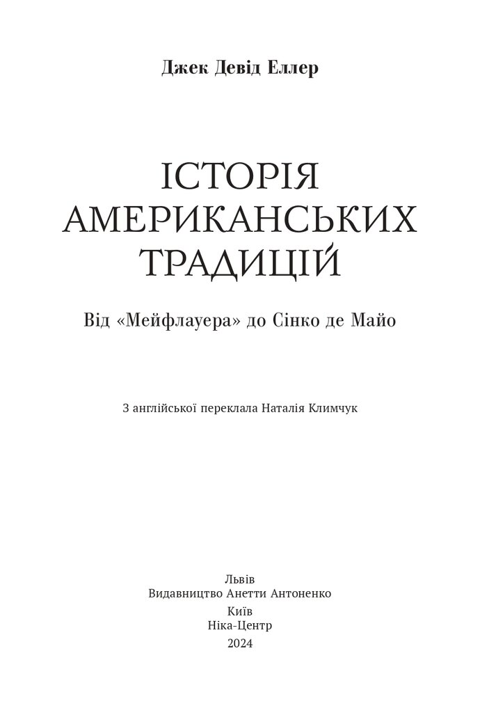 Видання "Історія американських традицій. Від «Мейфлауера» до Сінко де Майо" авторства Джека Девіда Еллера – захоплююче дослідження культурних і соціальних звичаїв, що формували Сполучені Штати Америки протягом багатьох століть. Книга пропонує глибоке занурення в історію і еволюцію традицій, які стали невід'ємною частиною американського суспільства, від перших колоністів до сучасних святкувань.