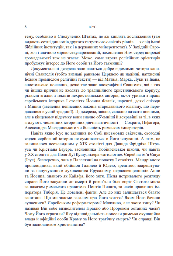 Ця книга спрямована до широкої авдиторії шукачів правди, не лише до спеціалістів, але й тих, хто прагне глибшого розуміння особи Ісуса, Його значення для Христової Церкви і людства. «Ісус» — це спроба по-новому, «історично серйозно» осмислити людський шлях земного життя Ісуса, не втрачаючи з поля зору духовного виміру, віри християн в Ісуса Христа Сина Божого.