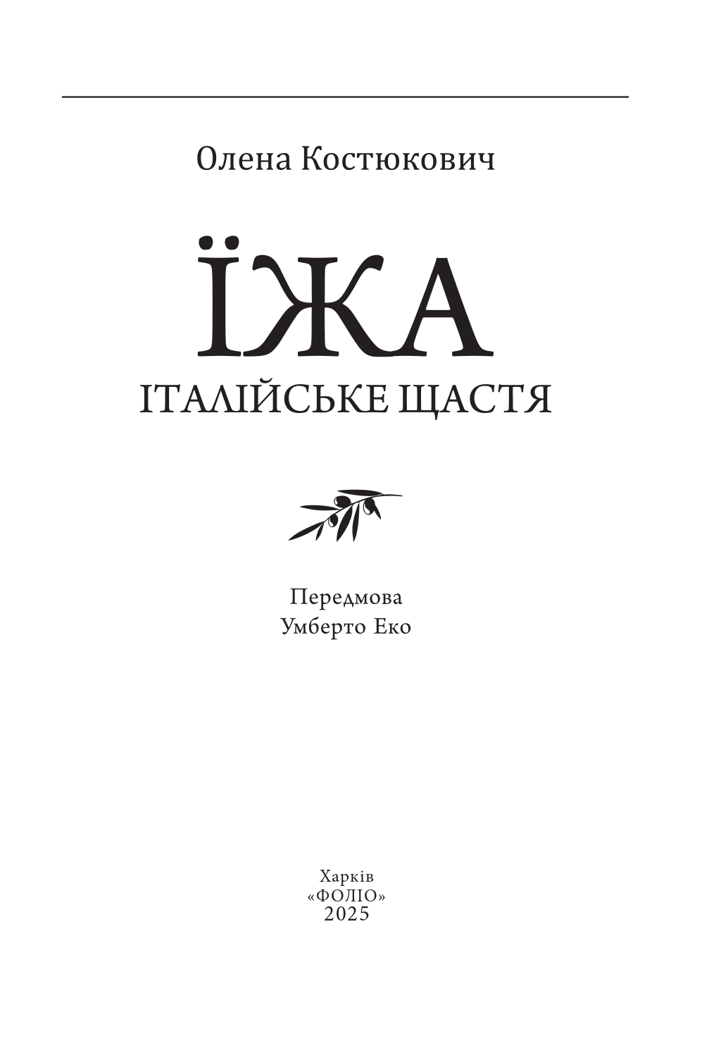 У 2006 році в Італії вийшла друком книжка Олени Костюкович «Їжа. Італійське щастя», що тоді ж була нагороджена премією Союзу книготорговців «Банкарелла». Цей твір було опубліковано в багатьох країнах: Китаї, Сербії, США, Канаді, Австралії, Великій Британії, Іспанії та інших. До українського видання авторкою було написано спеціальну передмову, перероблено текст, внесені оновлені дані.