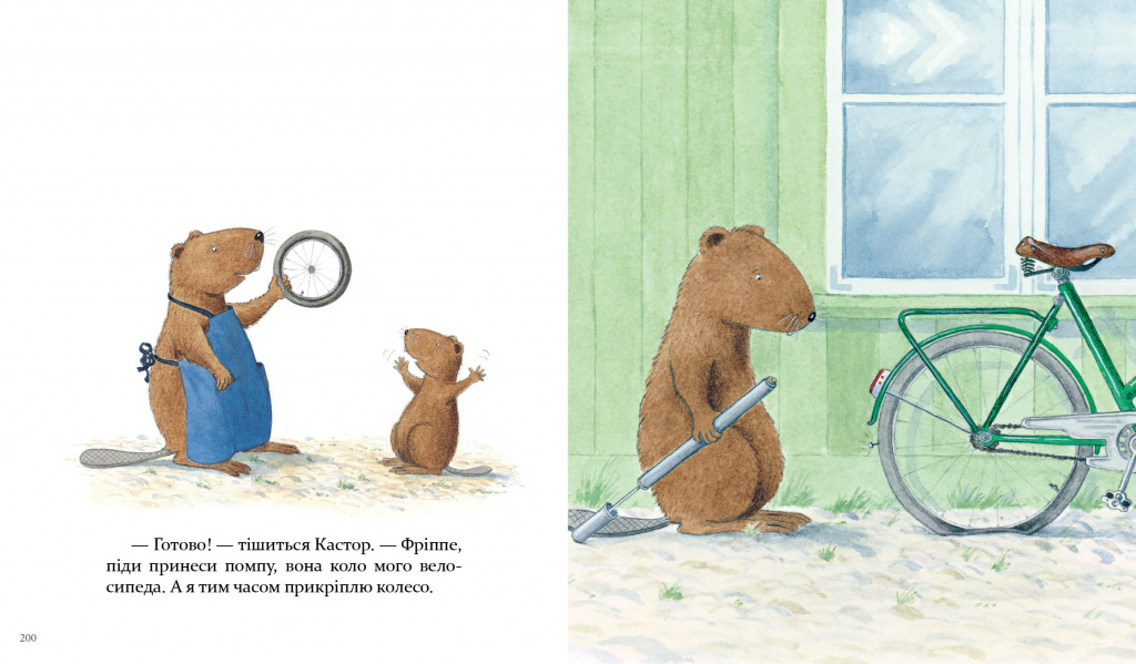 Відтепер усі-всі історії про Кастора й Фріппе в одній збірці! Книжка містить 6 уже улюблених історій (про те, як Кастор пече смачний пиріг, вирощує квасолю на підвіконні, майструє ящик для інструментів, шиє фартух, змішує фарби та фарбує шафку, лагодить велосипед) та 1 вперше перекладену українською — про те, як Фріппе узявся працювати в майстерні замість Кастора і що з того вийшло.