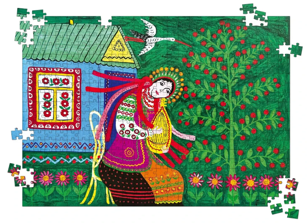 Деревʼяний пазл "Катерина співає пісню про Україну. Марія Примаченко" 500 елементів.