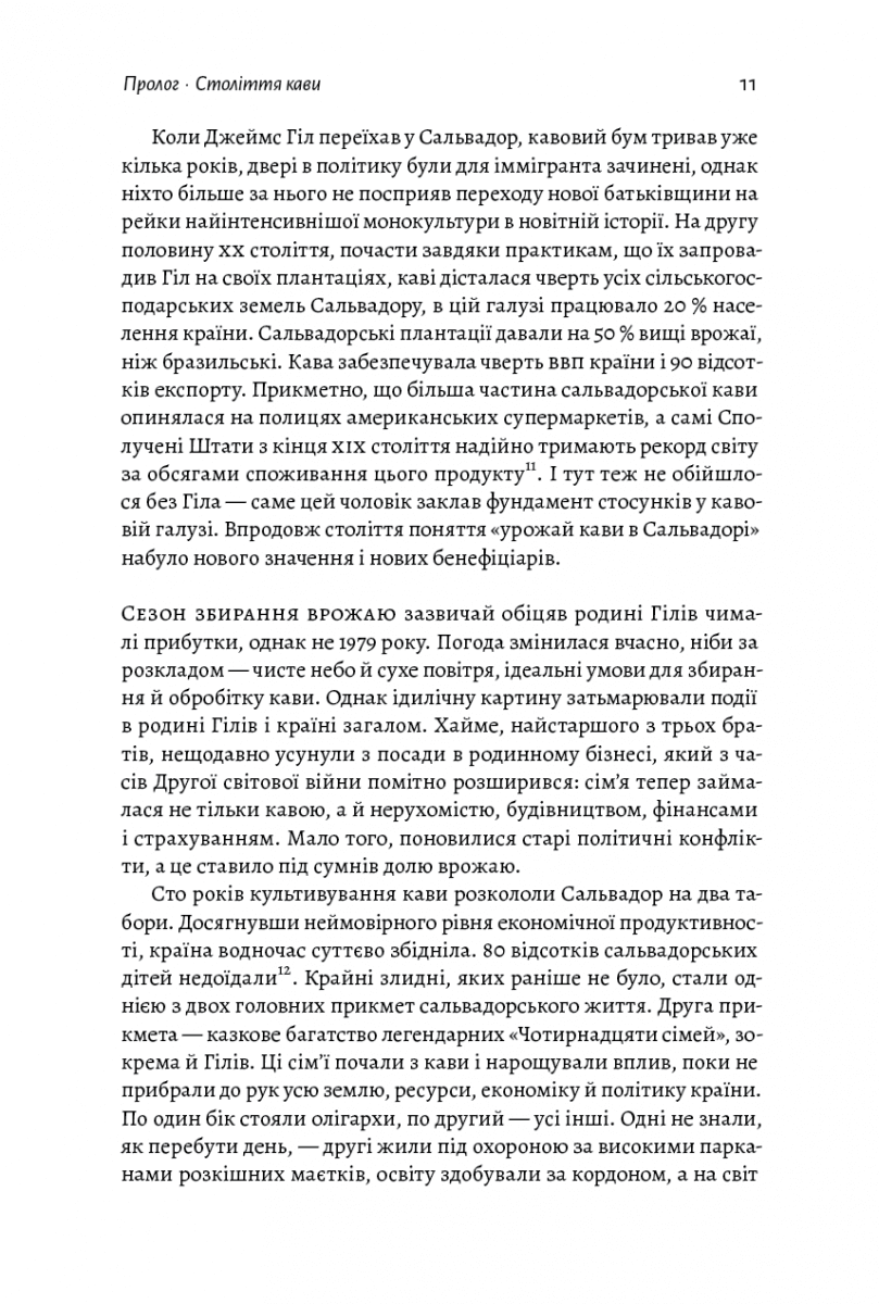 У XX столітті один англійський торговець Джеймс Гілл хитрістю і жорстокістю зміг побудувати цілу кавову імперію в Республіці Ель-Сальвадор. Як йому це вдалося? Цю фантастичну і маловідому історію розповідає автор цієї книжки, дослідник історії їжі, роботи та капіталізму, учасник Гарвардського наукового «Проєкту з вивчення справедливості, добробуту та економіки» Огастін Седжевік. Він показує, як ми щодня п’ємо каву і навіть не замислюємося, в яких умовах її могло бути зібрано і змелено. На плантаціях Джеймса Гілла панували нелюдські умови — кава стала майже символом капіталізму, тож людям, які знаходилися в підпорядкуванні власника плантації, доводилося працювати ще більше і потужніше.