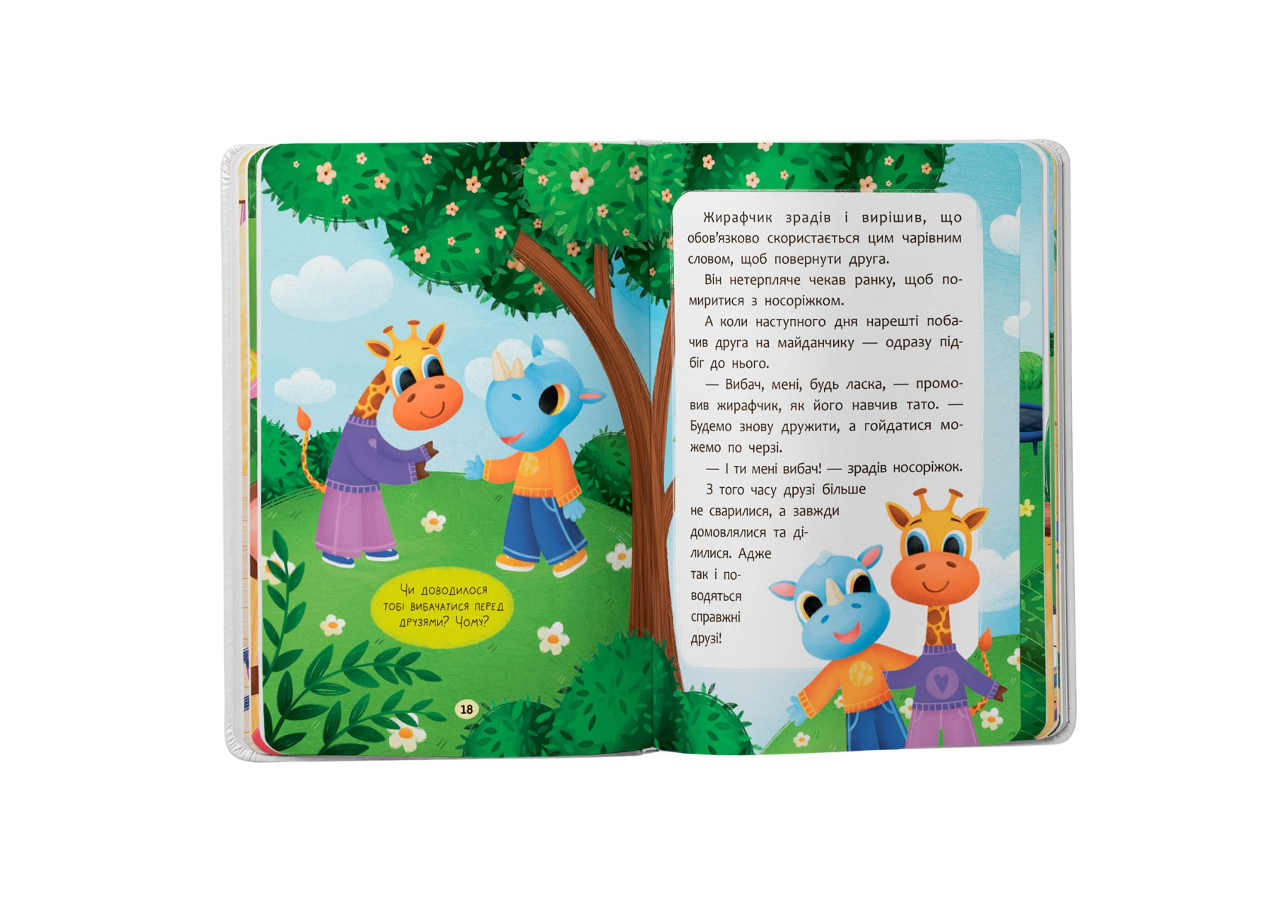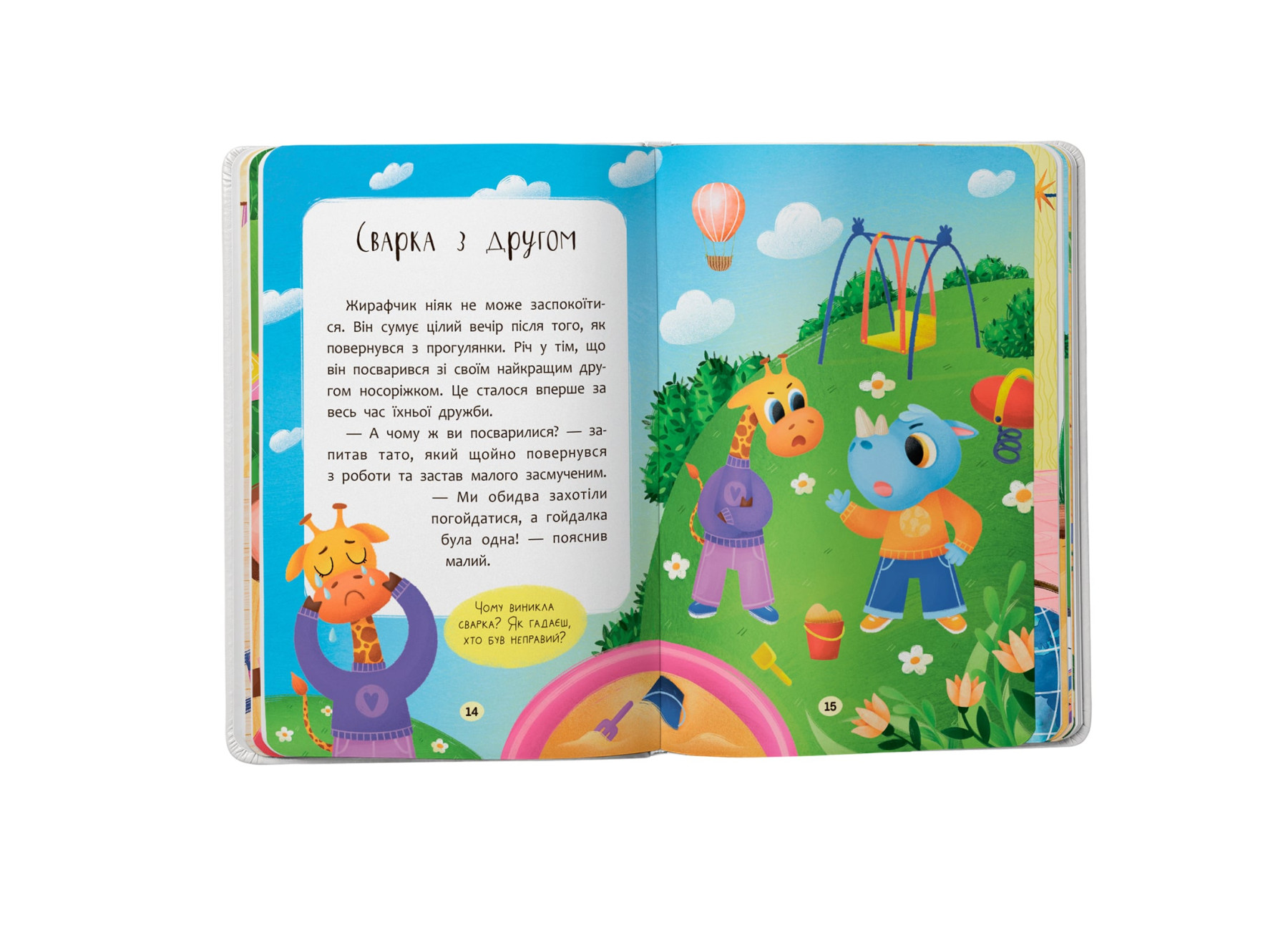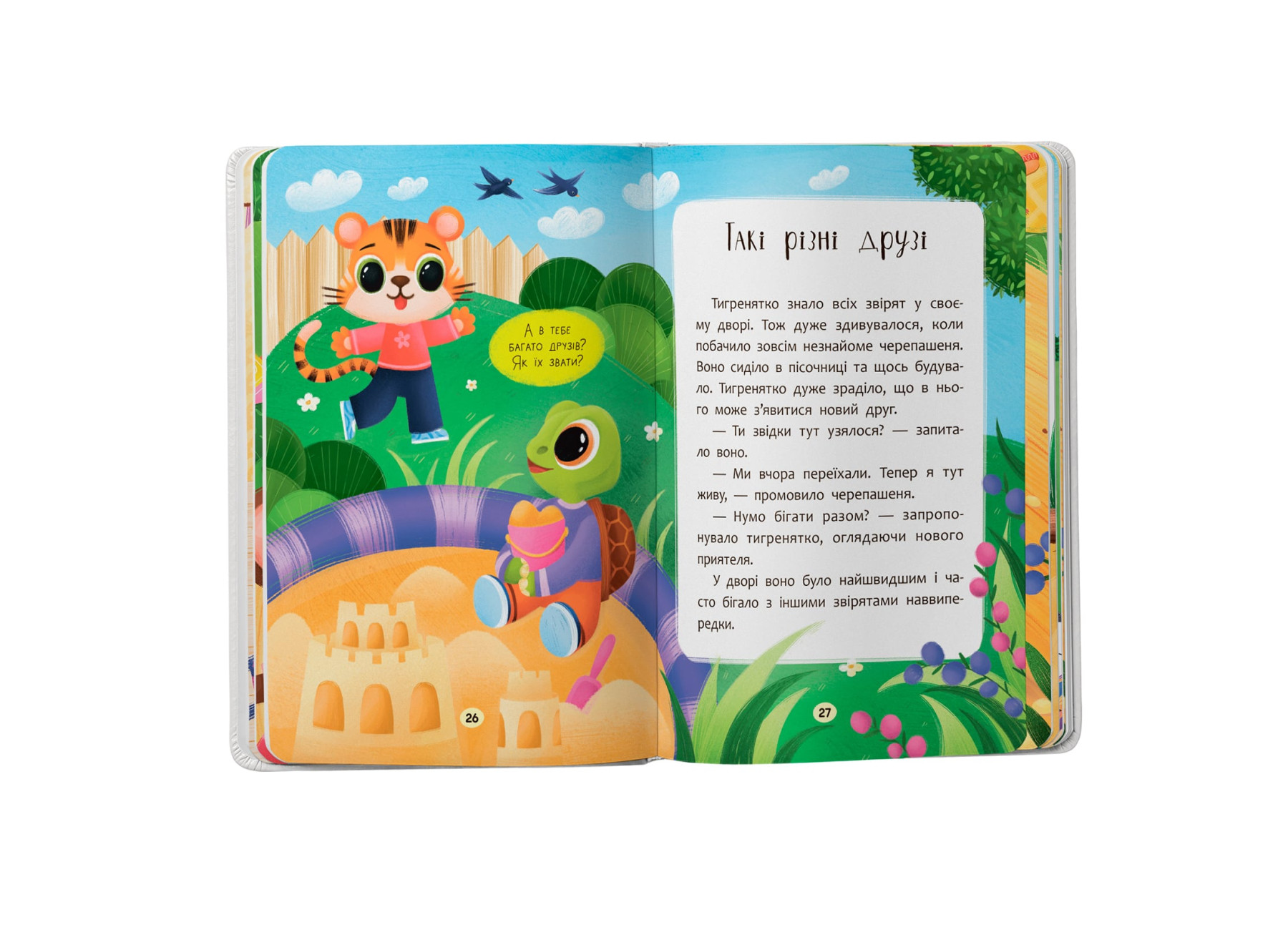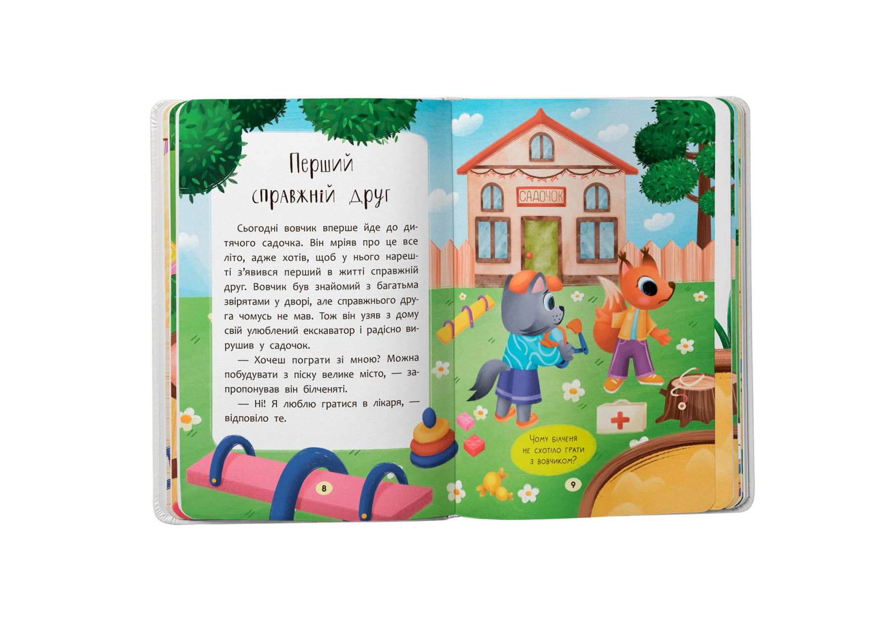 Ваш малюк соромиться познайомитися з іншими дітлахами, засмучується, що його не помічають і грають без нього, ніяковіє та не знає, як навчитися дружбі? Тож завдання дорослих — допомогти дитині подолати сором'язливість, навчитися знаходити взаєморозуміння з іншими дітьми, самостійно вирішувати конфліктні ситуації, а ще зберігати дружбу та самому навчитися бути добрим другом. Це видання стане незамінним помічником і пояснити малюкові, що таке дружба, а милі герої на своєму прикладі покажуть, як потоваришувати з іншими дітьми та знайти справжніх друзів.