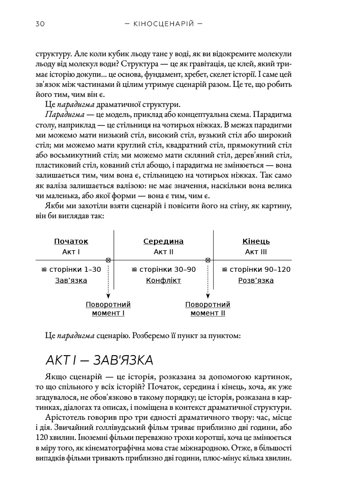 Книга «Кіносценарій» відомого американського теоретика Сіда Філда є класичним посібником для всіх, хто прагне опанувати мистецтво написання сценаріїв. Автор систематизує основні принципи побудови драматургії, пояснює структуру сценарію — від експозиції до кульмінації та розв’язки — і докладно розглядає триактну модель, яка стала стандартом у світовій кіноіндустрії. На численних прикладах із відомих фільмів Філд демонструє, як створювати переконливих персонажів, динамічний сюжет і драматичну напругу.У книзі ви дізнаєтесь:- чому перші десять сторінок сценарію мають вирішальне значення для продюсерів і редакторів;- чому структура і персонажі є основою будь-якої кінорозповіді;- як адаптувати роман, п’єсу чи статтю у сценарій, придатний для екранізації;- як захистити свої авторські права та оформити юридичне право на сценарій;- як створювати правдиві діалоги, глибоких героїв і динамічний сюжет, уникаючи шаблонів.Цей посібник вважається золотим стандартом індустрії в усьому світі, він надихнув чимало сценаристів на створення успішних творів кіно та телебачення.
