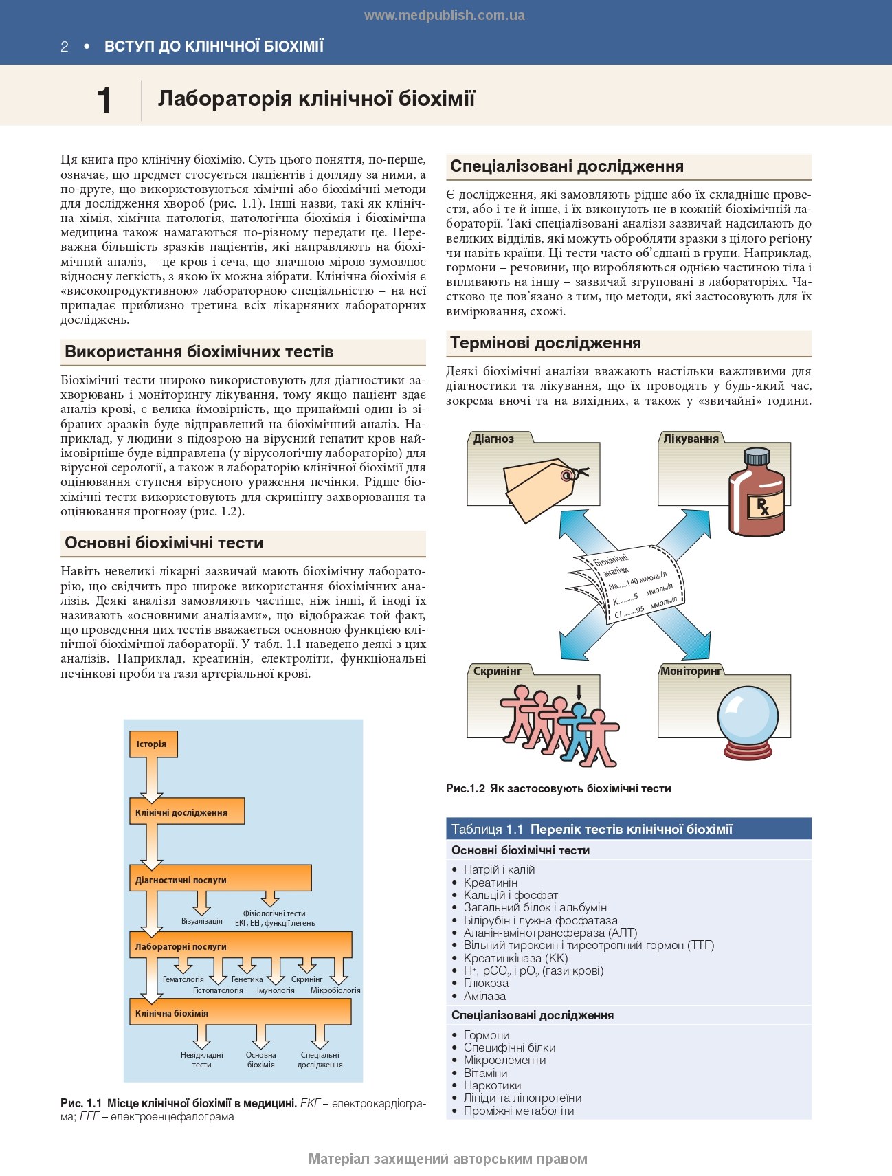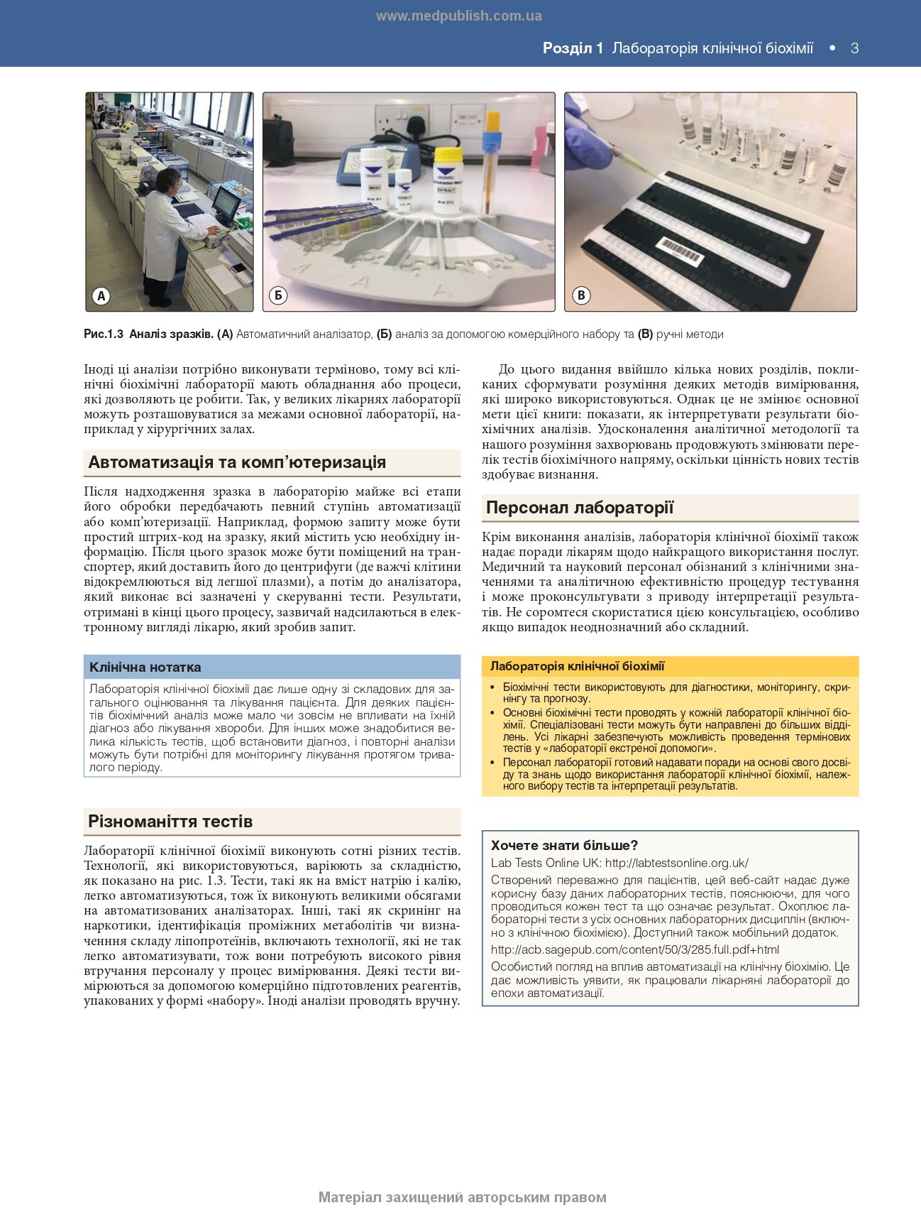 • У посібнику висвітлено більшість стандартних аналізів і їхнє значення відповідно до клінічних умов.
