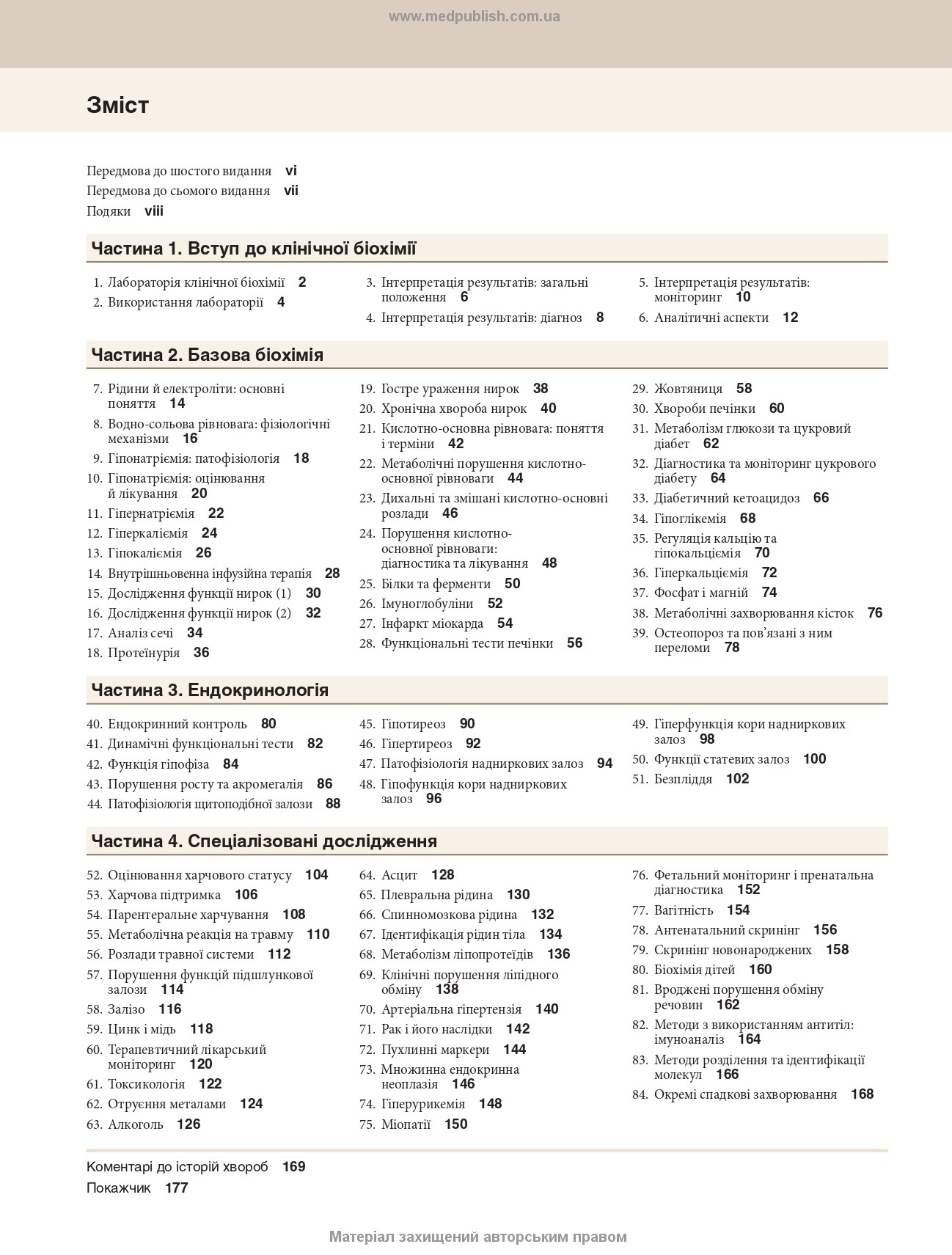 Книга — ідеальне джерело для розуміння основ біохімічних аналізів і їх інтерпретації. Вона допоможе застосовувати отримані знання в клінічній практиці. Ми зберегли базову структуру, яка вже довела свою ефективність; після вступу йдуть розділи з базової біохімії, ендокринології і спеціалізованих досліджень.