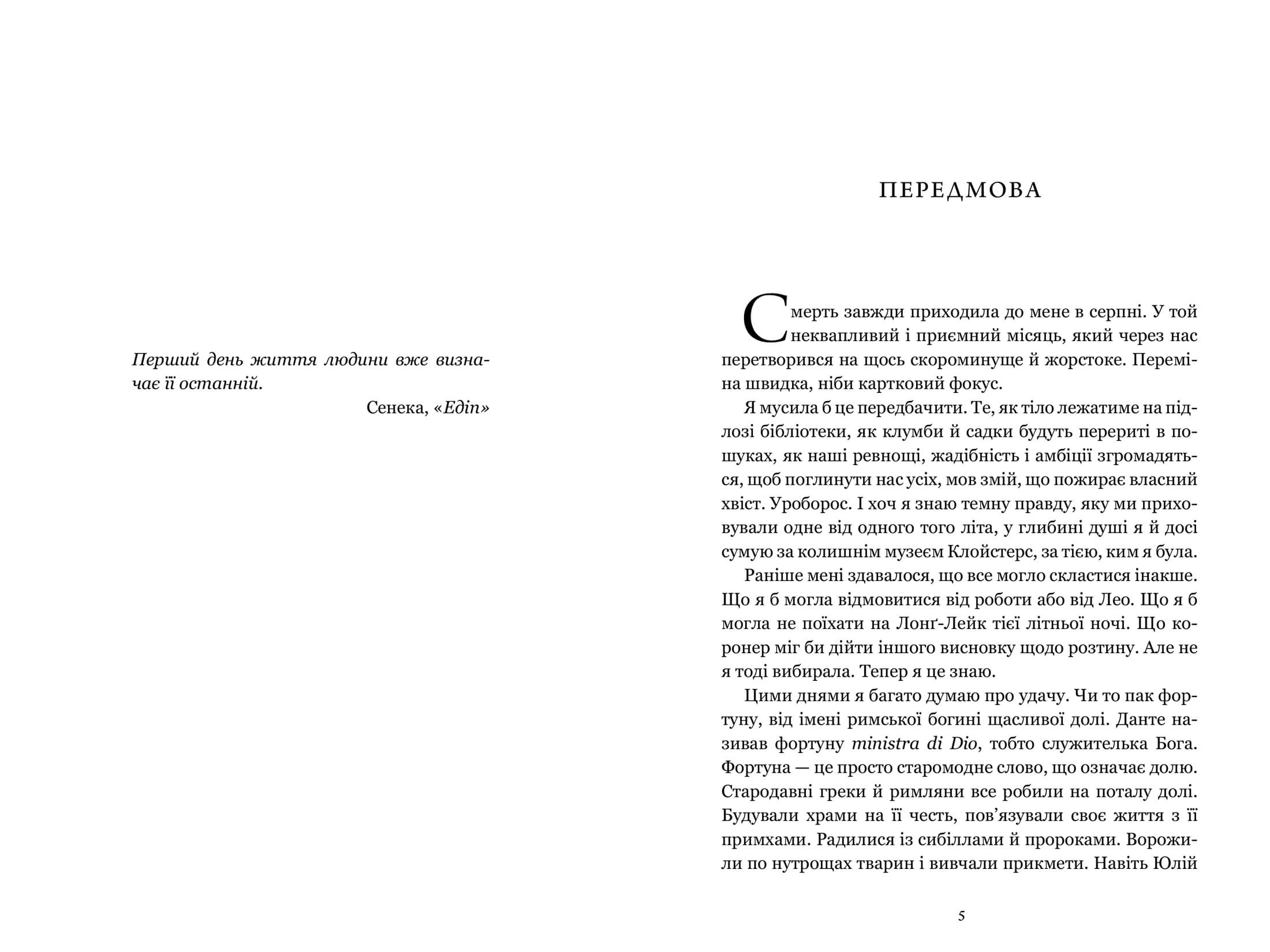 Там Енн потрапляє у вузьке коло харизматичних і загадкових дослідників. Серед них — куратор Патрик Роланд та Рейчел Мондрей, його асистентка й муза. Поряд з ними увагу Енн також привертає Лео Бітбурґ — садівник, який доглядає унікальну живу колекцію рослин музею.