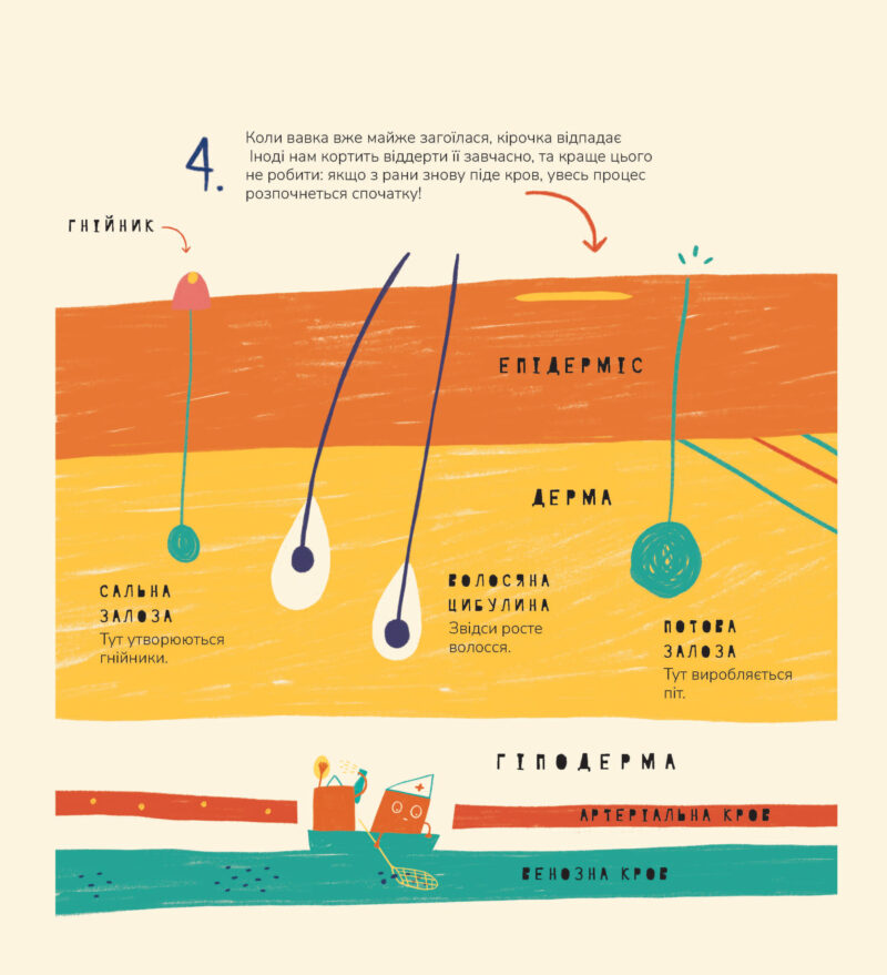 На щастя, шкіра, як надійна упаковка, захищає тебе від серйозніших ушкоджень, а червоні та білікров’яні тільця допомагають їй відновлюватися й борються з інфекціями!