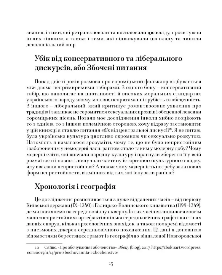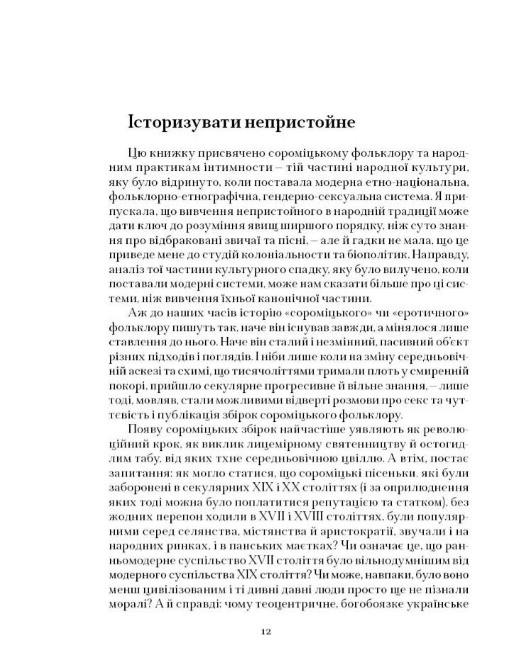 Монографія Марії Маєрчик «Колоніальність непристойного: сороміцьке в модерному дизайні сексуальности» вивчає історію української культури і науки через призму тої частини народної традиції, яка не ввійшла до канонічного культурного спадку. Йдеться, зокрема, про сороміцький фольклор та народні практики інтимности. Шукаючи відповіді на запитання, чому теоцентричне, богобоязке українське суспільство XVII–XVIII століть вільно співало пісні, котрі секулярне суспільство XIX–XX століть почало вважати вкрай аморальними й заборонило, книжка простежує зміни в ідеї непристойности від давньоруського періоду до XX століття. Водночас у центрі уваги перебуватиме модерність — доба, коли, власне, й виникли сексуалізовані, біополітичні форми непристойности, як-от мат, порнографія та перверсія. Запитуючи, чому модерність потребувала нових модусів непристойного, книжка оприявнює їхній зв’язок із такими панівними класифікаційними системами, як гендер, сексуальність, етнічність і раса, що виростають з історії та практик колоніалізму і є засадничими складниками модерного конструкту білости. Як українська культура реагувала на ці процеси, як давала раду з новими викликами модерности, ставала вона на бік колоніальних знань чи чинила їм спротив, посилювала біополітичні дискурси чи спростовувала їх, або ж, інакше кажучи, яким був український деколоніальний проєкт на рубежі XIX і XX століть, — про це читайте в «Колоніальності непристойного».