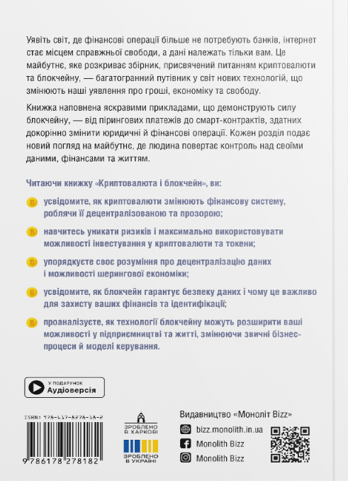Купить Криптовалюта і блокчейн. Збірник самарі + аудіокнижка на сайте Book24 можно недорого. То, что мы предлагаем ваше любимое издание по лучшей цене, вы убедитесь, сравнив наши цены со стоимостью книг в стационарном магазине. На сайте вы можете просмотреть фото книги, ознакомиться с ее кратким содержанием и почитать отзывы. Благодаря нашему сервису, вам не придется тратить время на поиски интересующего издания в книжных магазинах. Заказать книгу у нас можно в режиме онлайн или по телефону. Осуществляем доставку заказов во все города Украины – в Киев, Харьков, Днепр, Запорожье, Львов и др.