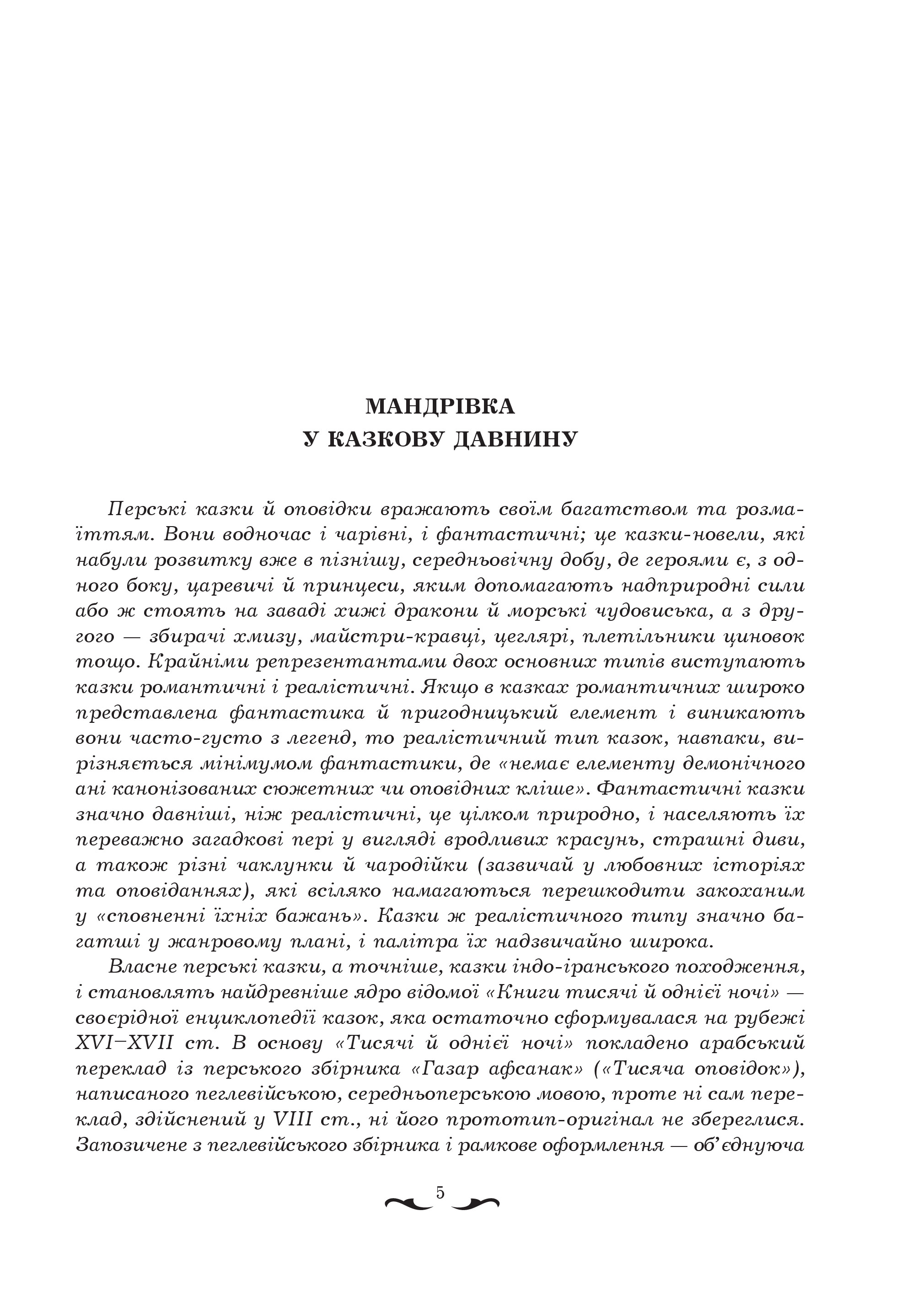 Як відомо, перські казки й оповідки, а точніше, казки індо-іранського походження, становлять найдревніше ядро знаменитої книги «Тисячі й однієї ночі» — своєрідної енциклопедії казок, яка остаточно сформувалася на рубежі XVI–XVII ст. Власне, пропоновані читачеві вибрані перські оповідки й казки і є тією основою «Тисячі й однієї ночі».